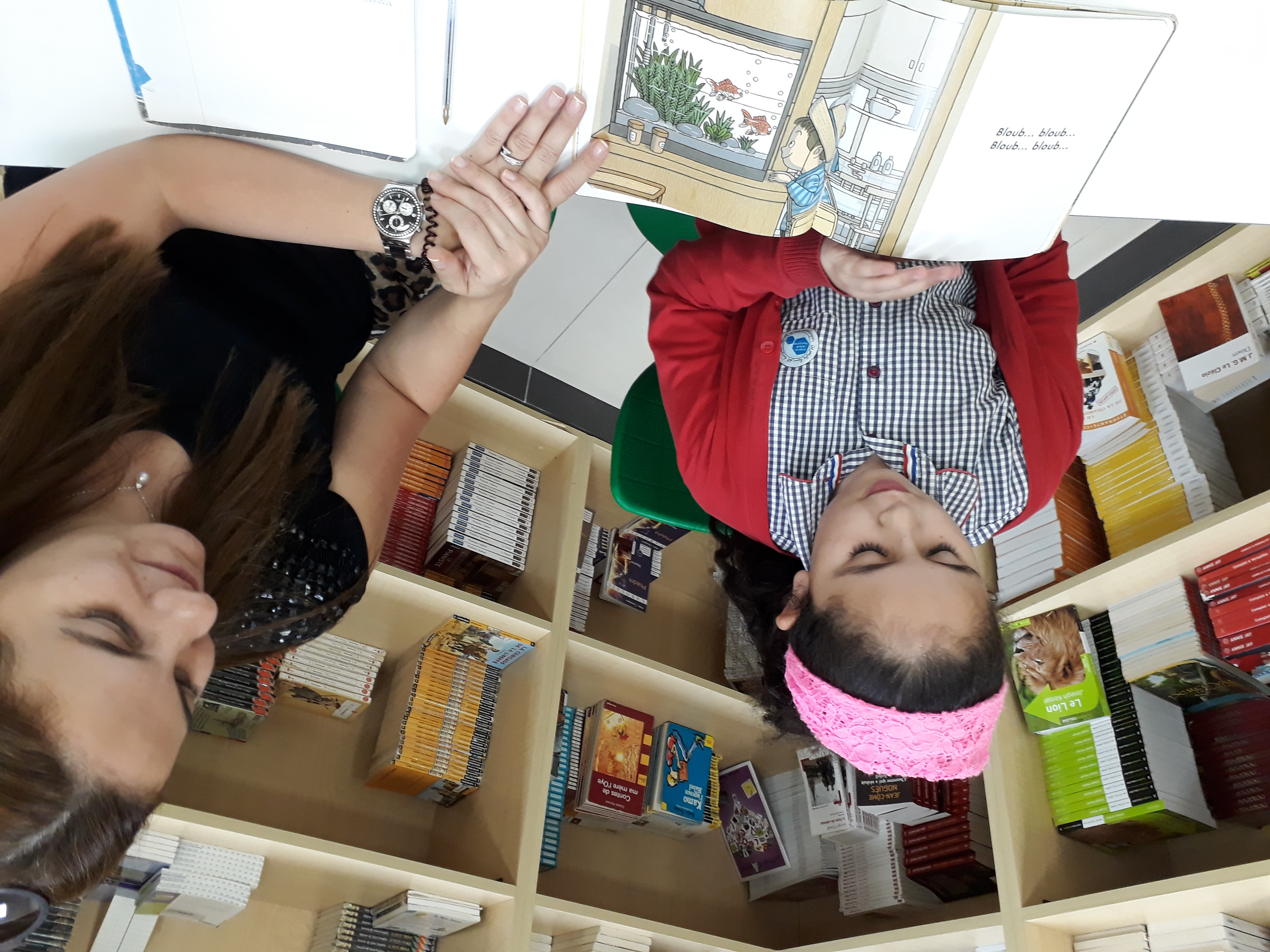 Encadrés par Joëlle Akiki, notre documentaliste côté primaire, des élèves du CM2 à la 5e s’exercent à la lecture en enregistrant de nombreux livres pour petits.