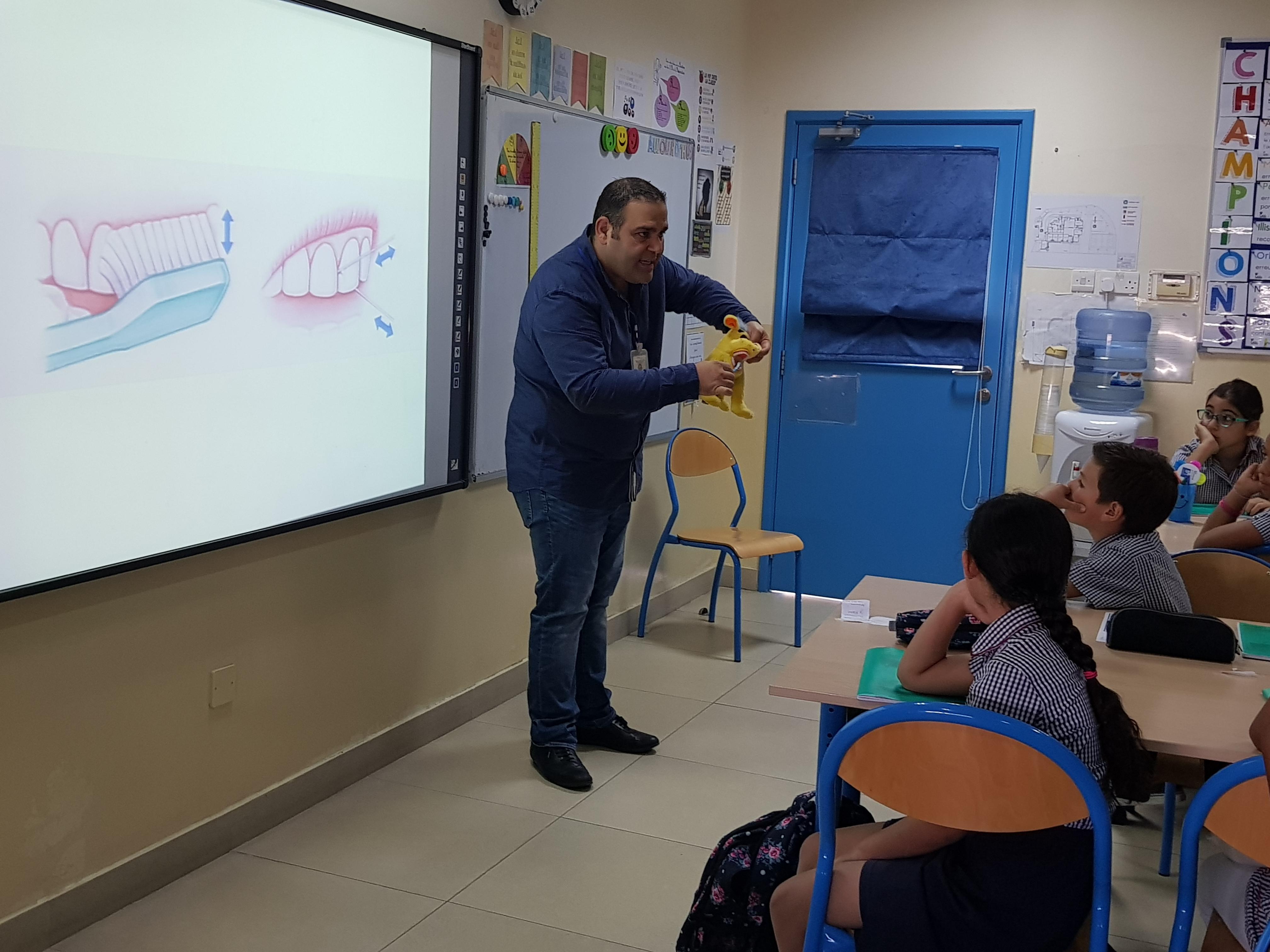 À l’occasion de la semaine du goût, un dentiste et un orthodontiste sont venus nous rappeler les règles d’hygiène pour avoir des dents saines : éviter de manger des sucreries et des sodas et se brosser les dents de façon circulaire au moins 2 fois par jour.