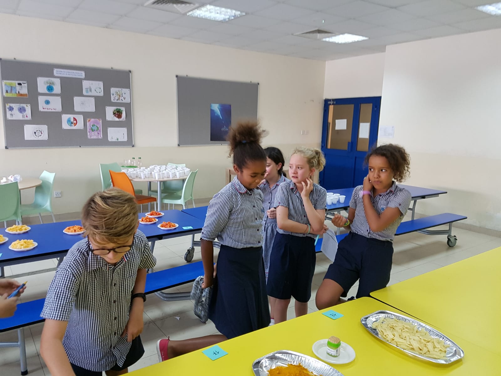 Durant cette semaine, les sens sont en ébullition ! En particulier celui du goût, chaque jour apporte son lot d’activités et de dégustations, à commencer par la cantine, ou chaque jour sont proposés des mets venant d’un pays particulier :