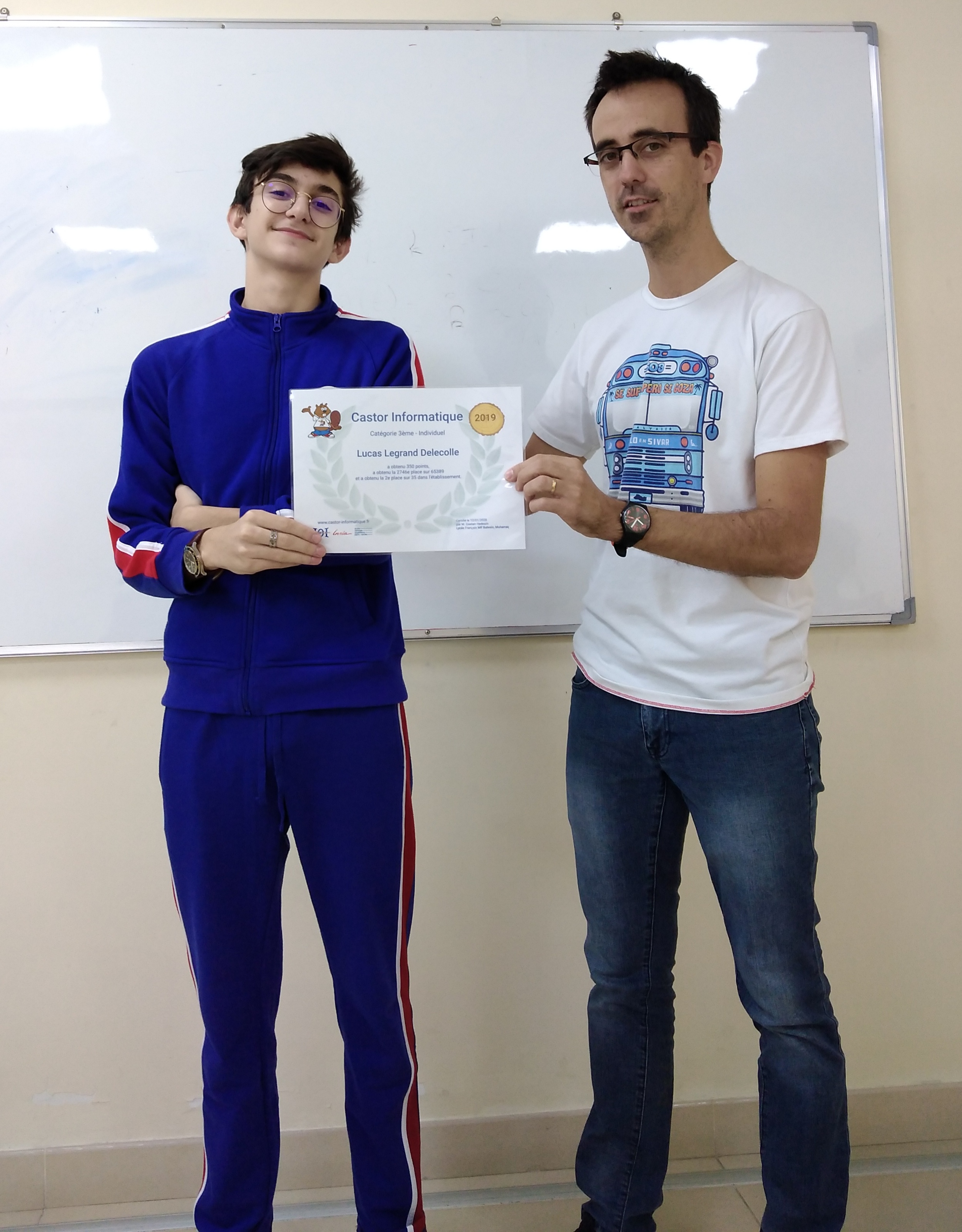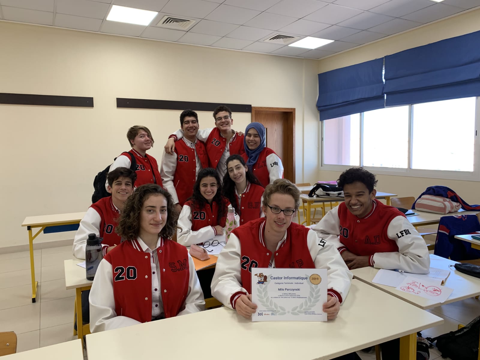 304 élèves du lycée (du CM1 à la Terminale) ont passé le concours Castor pendant la semaine du 1er décembre 2019. C’est un concours de logique mathématique et informatique qui a lieu tous les ans à la même époque. Il se fait en ligne et on compte plus de 700 000 participants à travers le monde.