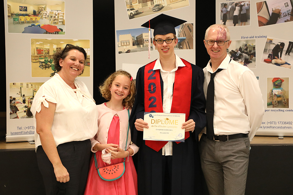 Le Lycée Français International de Bahreïn est assez petit mais il recèle parmi ses élèves de véritables pépites qui ne demandent qu’à être révélées au grand jour. C’est donc avec émotion et une grande fierté que nous tenons à féliciter le major de la promotion 2020 du Baccalauréat. Milo Parczynski brille par sa discrétion, sa gentillesse et sa camaraderie : il n’en a pas moins obtenu les félicitations du jury du Baccalauréat, soit une moyenne générale de plus de 18 sur 20 ! Nous saluons avec toute sa famille cet événement très rare dans un lycée, et tout particulièrement dans un établissement à l’étranger. Bravo à lui et bonne continuation vers de grandes études dans des écoles prestigieuses qui seront ravies de le compter parmi leurs étudiants.