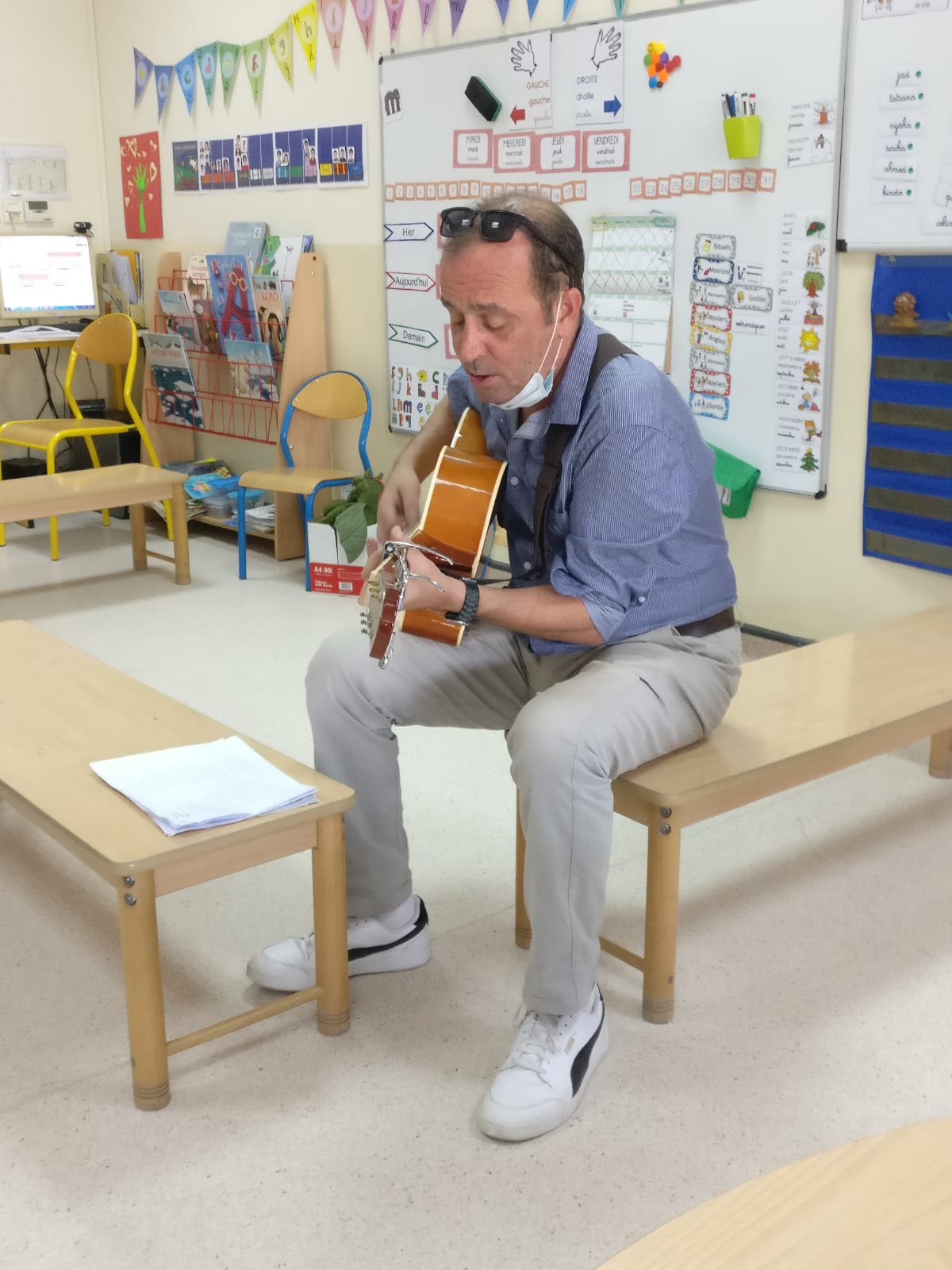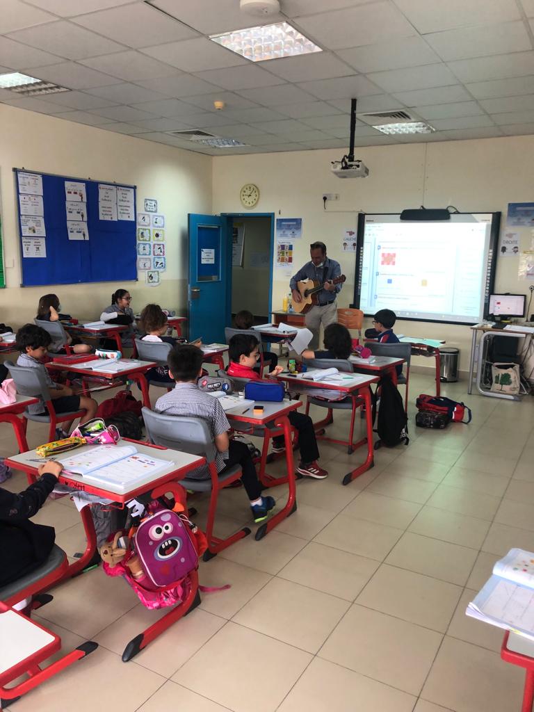 -Les élèves de l’école primaire ont accueilli, Monsieur Raphaël LEFEUVE enseignant en CE2 avec sa guitare, dans leurs classes en chantant avec lui des chansons françaises.