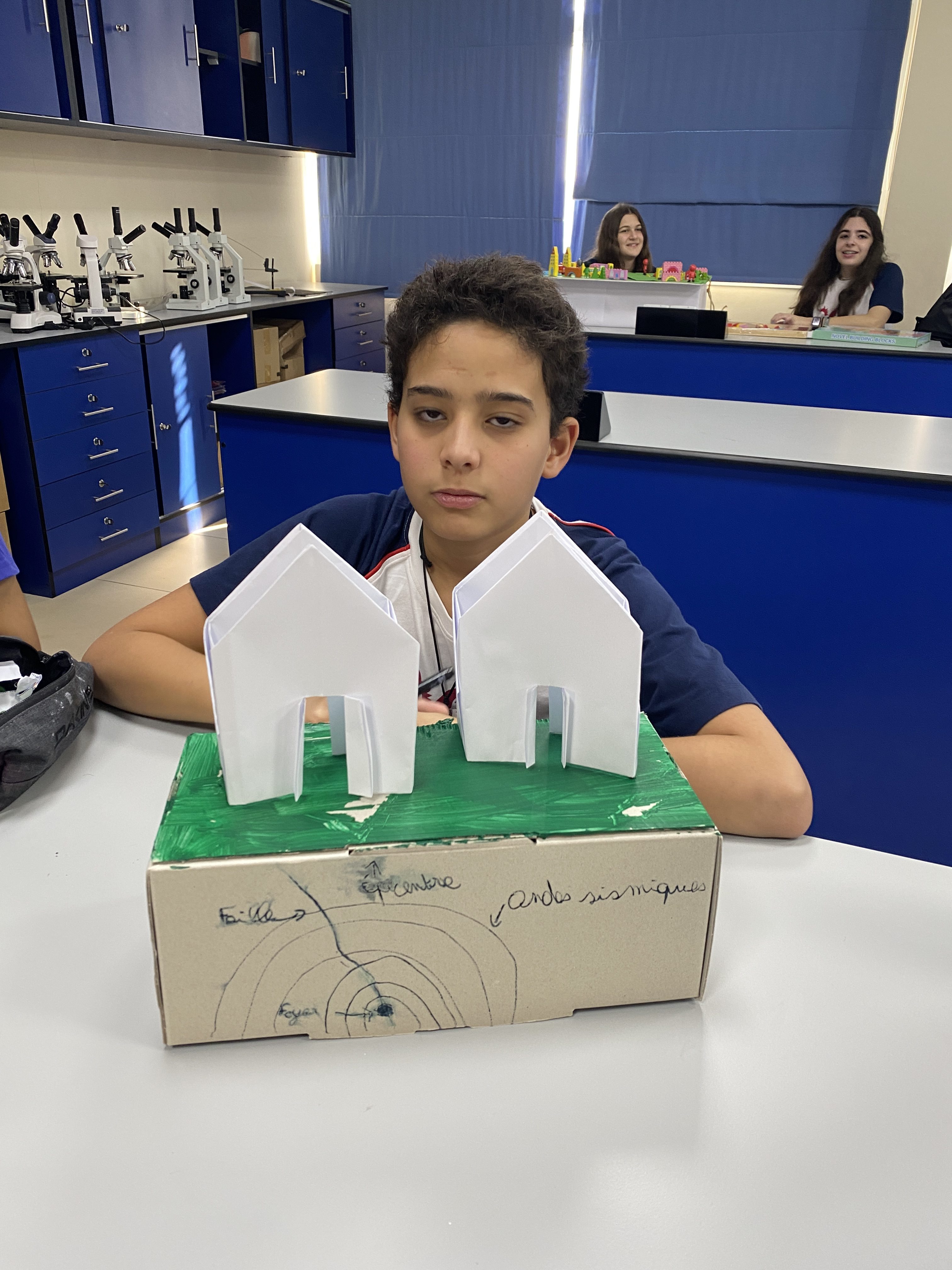 Travaux de modélisation de séismes par les élèves de 4ème. Beaucoup d’imagination et de belles créations.