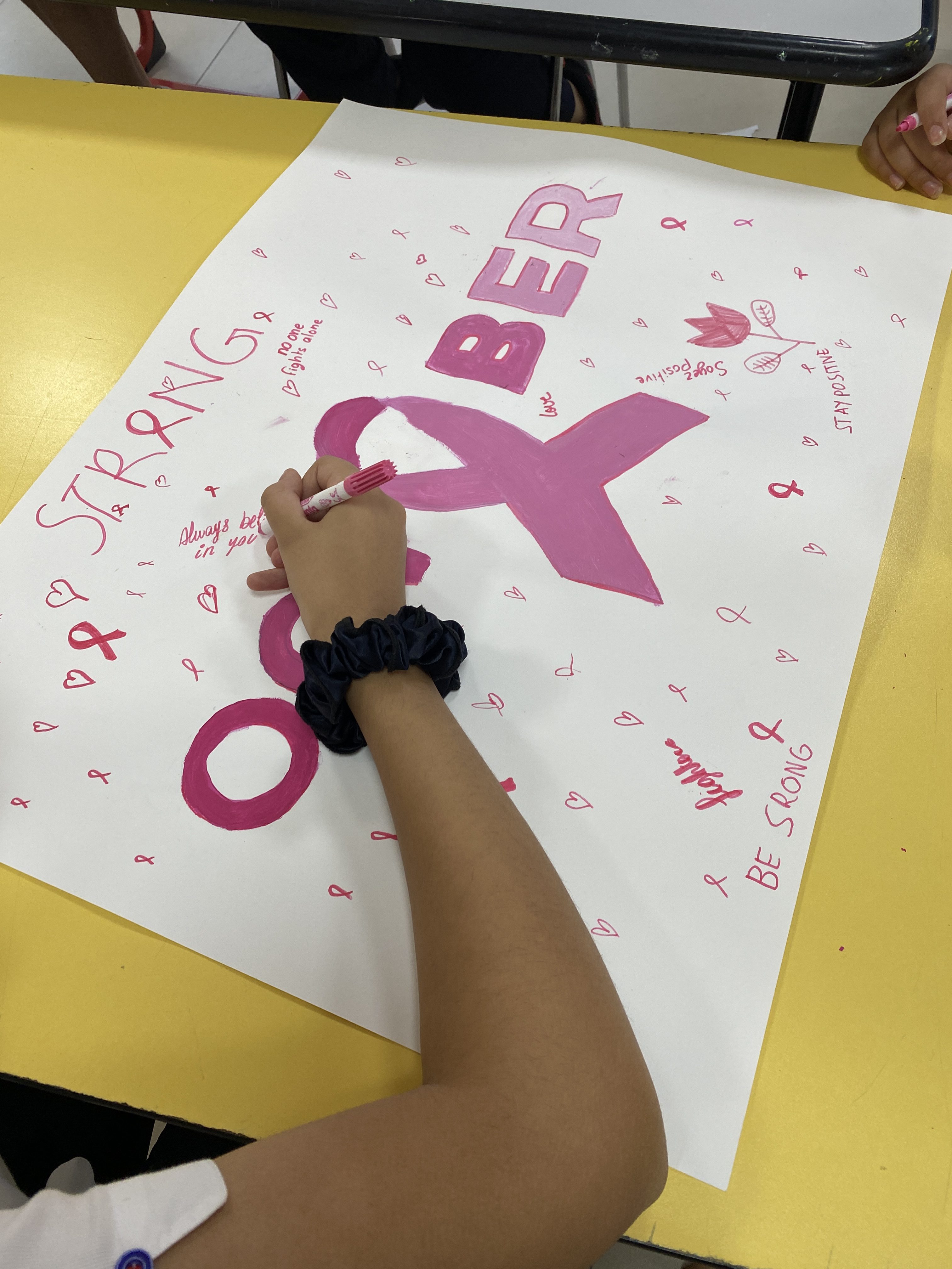 Dans le cadre de sensibilisation contre le cancer du sein, pendant leur classe d’arts, les collégiens ont fait des présentations collectives sur le thème d’octobre rose.