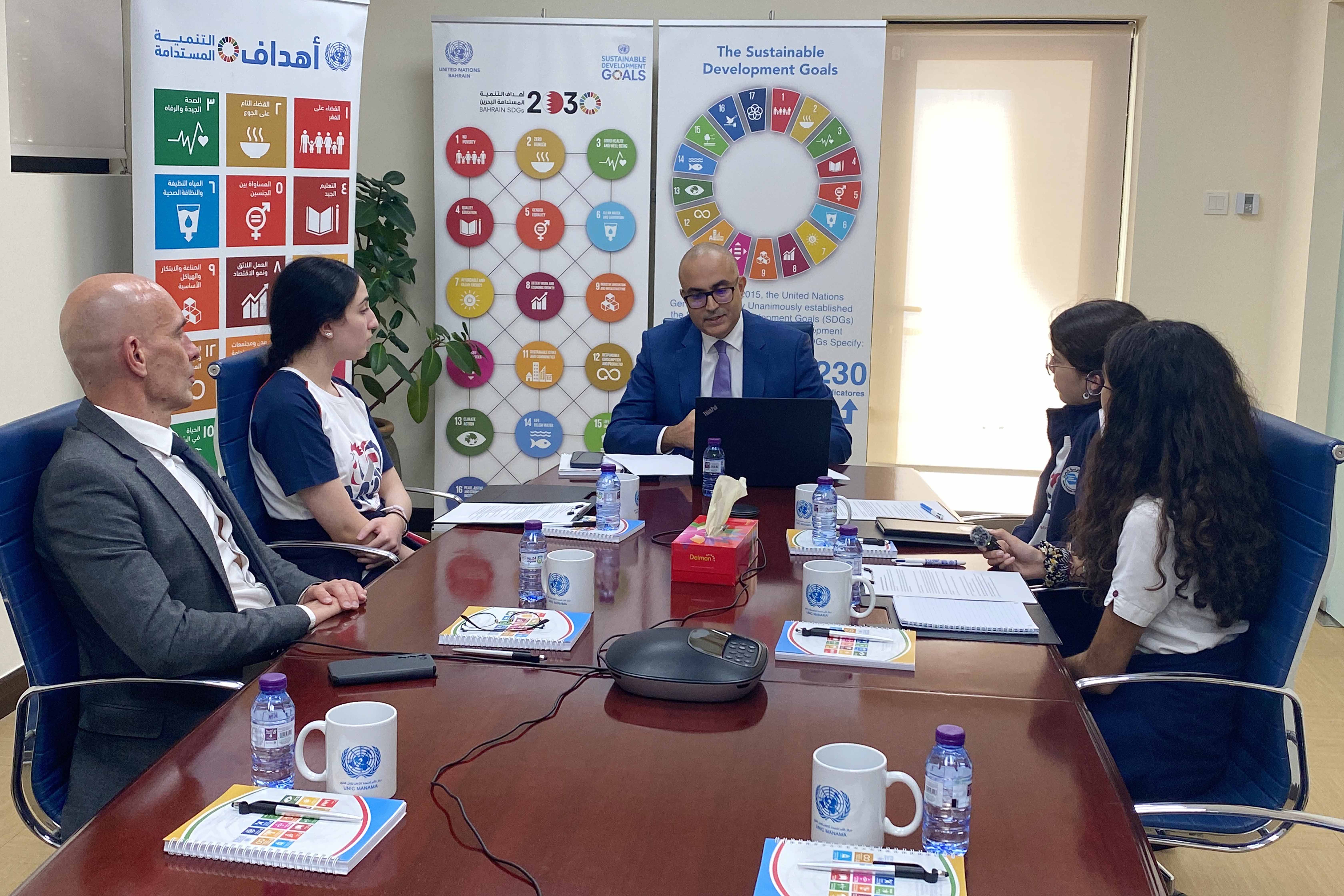 Lors de cette visite, l’équipe de la webradio a eu la chance d’interviewer M. Ahmed Ben Lassoued, le directeur du Centre d’information des Nations Unies à Bahreïn. Nos jeunes journalistes ont posé des questions pertinentes sur les initiatives et les projets en cours pour lutter contre les défis environnementaux. M. Ben Lassoued a pris le temps d’expliquer les enjeux du développement durable ainsi que le réchauffement climatique.