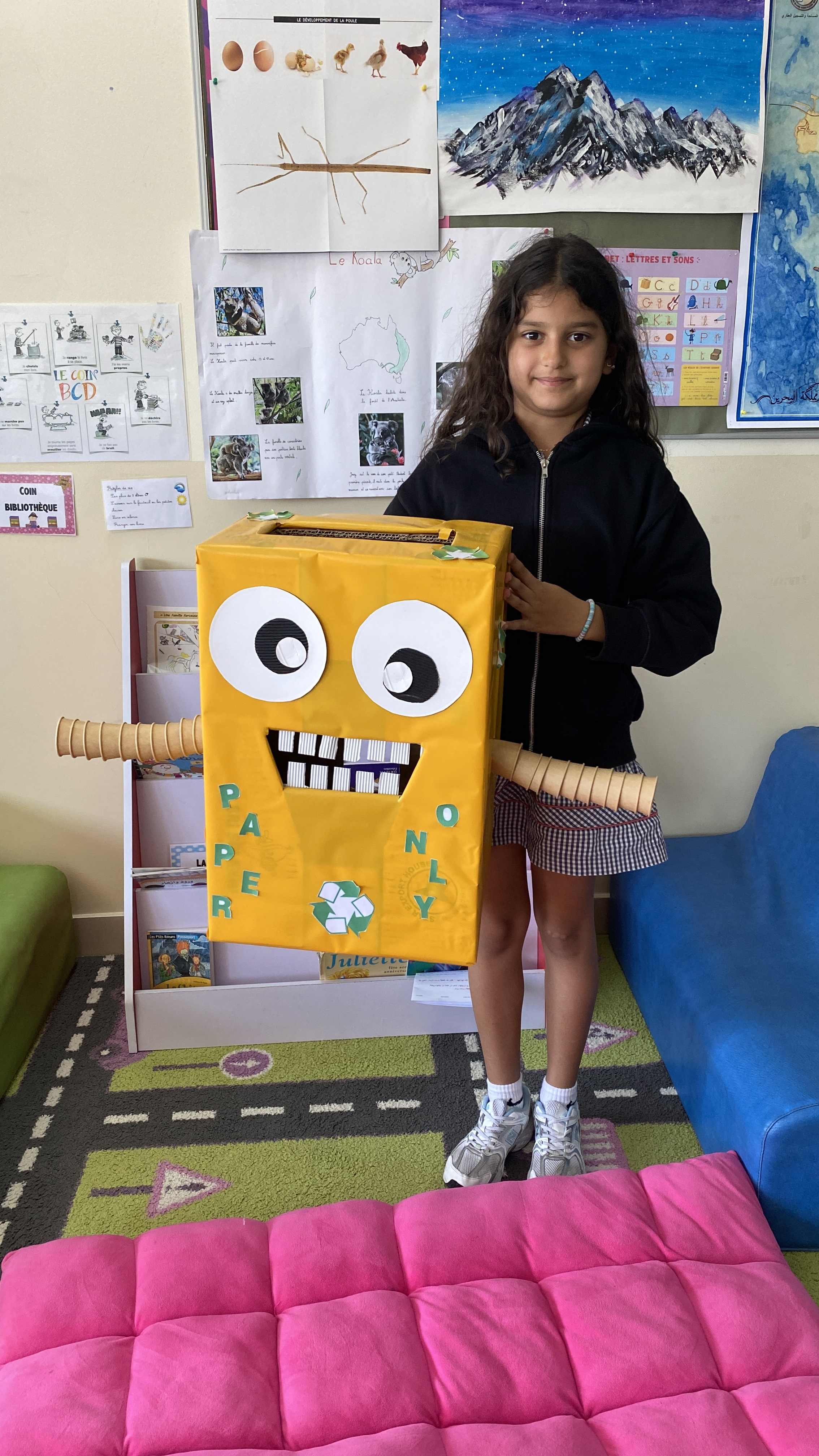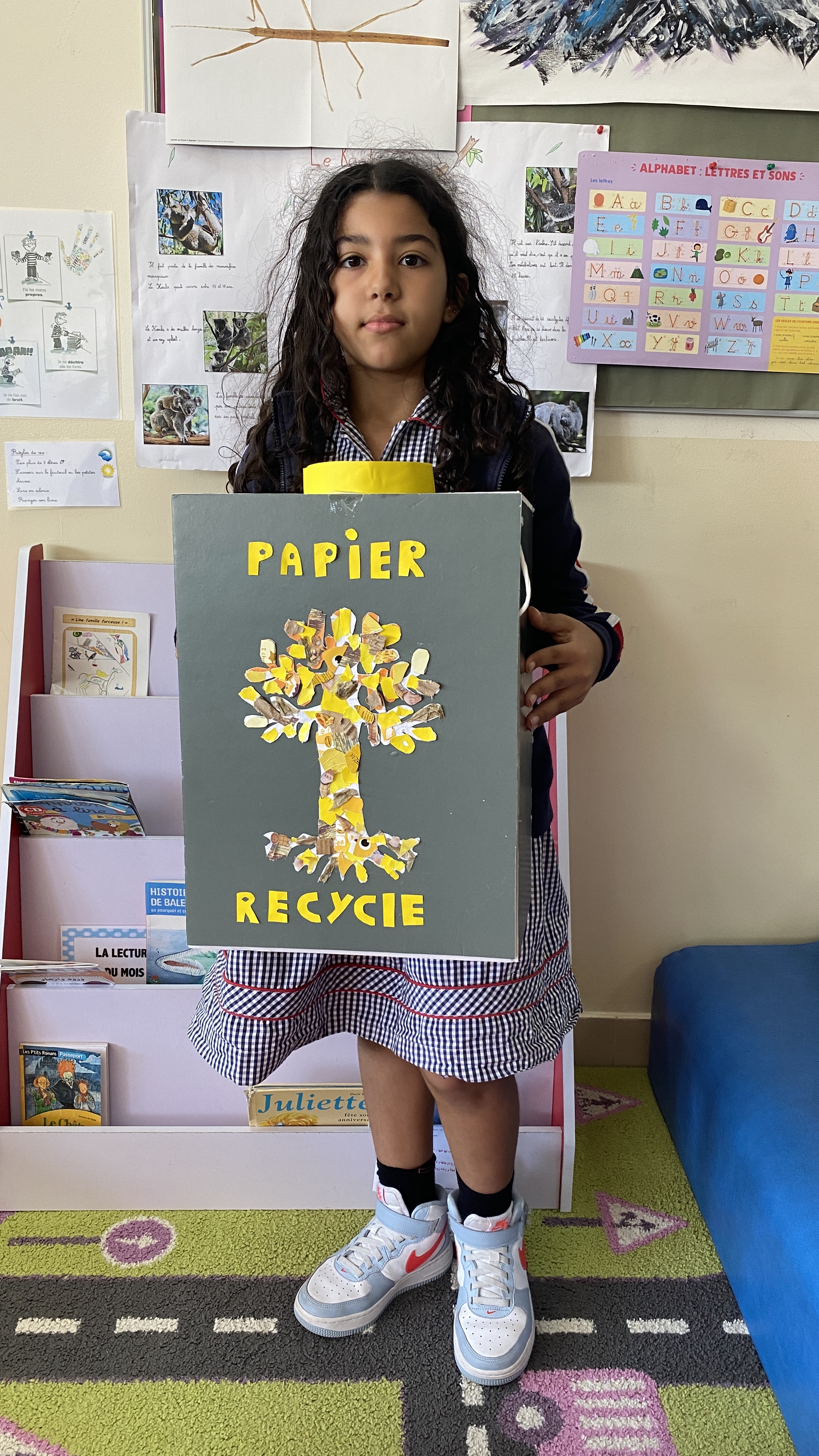 Nous sommes fiers de vous présenter « La plus belle des poubelles », notre initiative sur le développement durable axée sur le recyclage du papier. Nos élèves de CE2 A ont travaillé avec enthousiasme pour créer des poubelles de recyclage qui allient esthétique, message clair et fonctionnalité.