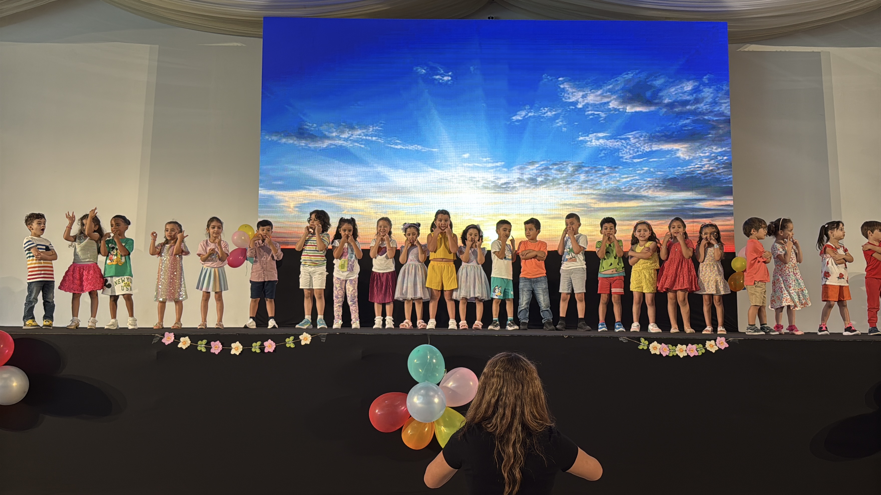 Nos élèves ont offert un spectacle de fin d’année haut en rythme et en émotions ! Le jeudi matin, 12 juin, au Raffels Alareen Hotel, ils ont célébré le thème des couleurs avec créativité et enthousiasme.
