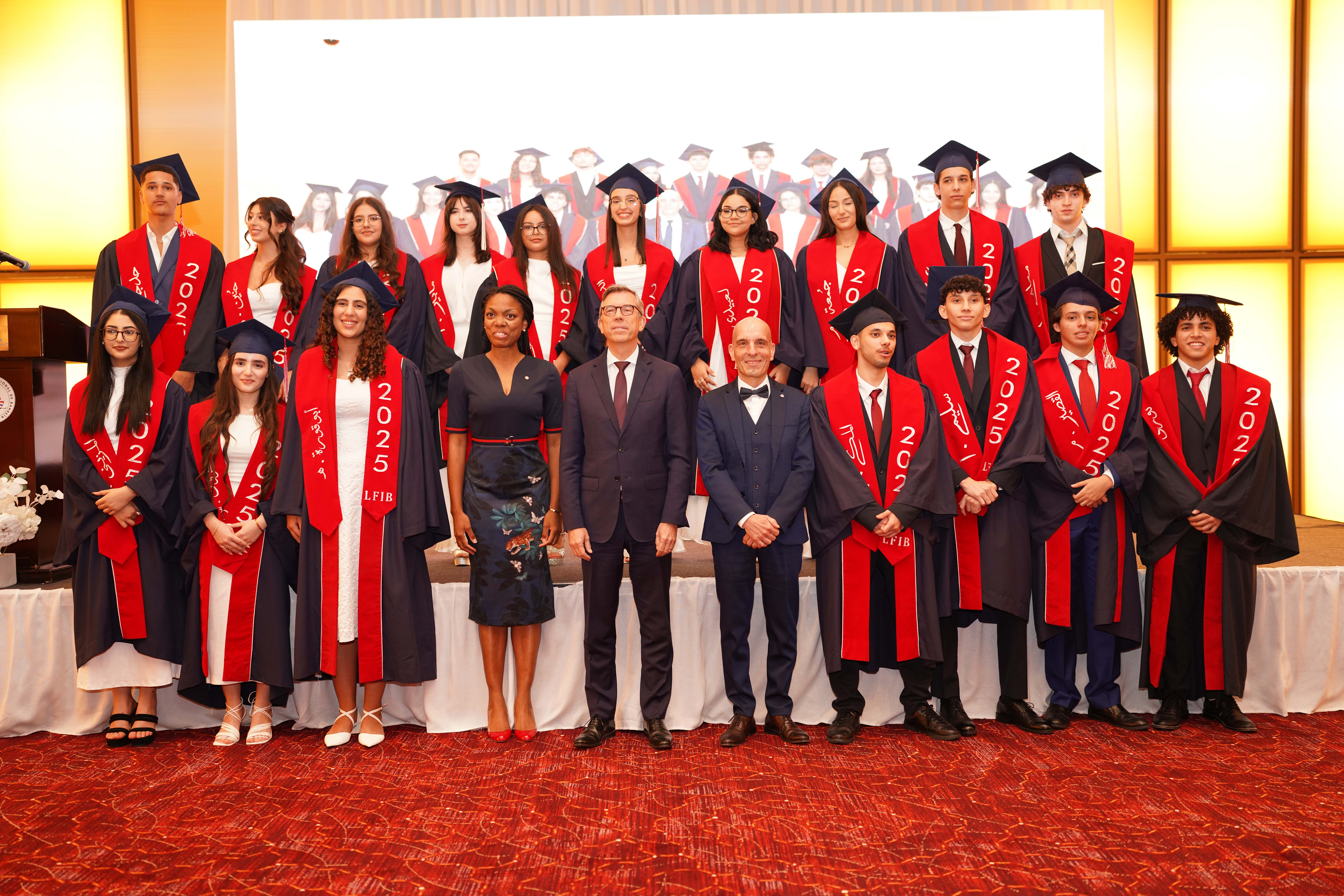 La cérémonie de remise des diplômes pour l’année scolaire 2024/2025 s’est déroulée dans le cadre prestigieux de l’hôtel et resort « The Art Rotana Amwaj ». Nous avons eu l’honneur d’accueillir S.E. Éric Giraud Telem, ambassadeur de France à Bahreïn, ainsi que Mme Rosiane Houngbo, conseillère des Français de l’étranger et représentante des Français. L’événement a également rassemblé des parents et des membres des équipes administrative et éducative.
