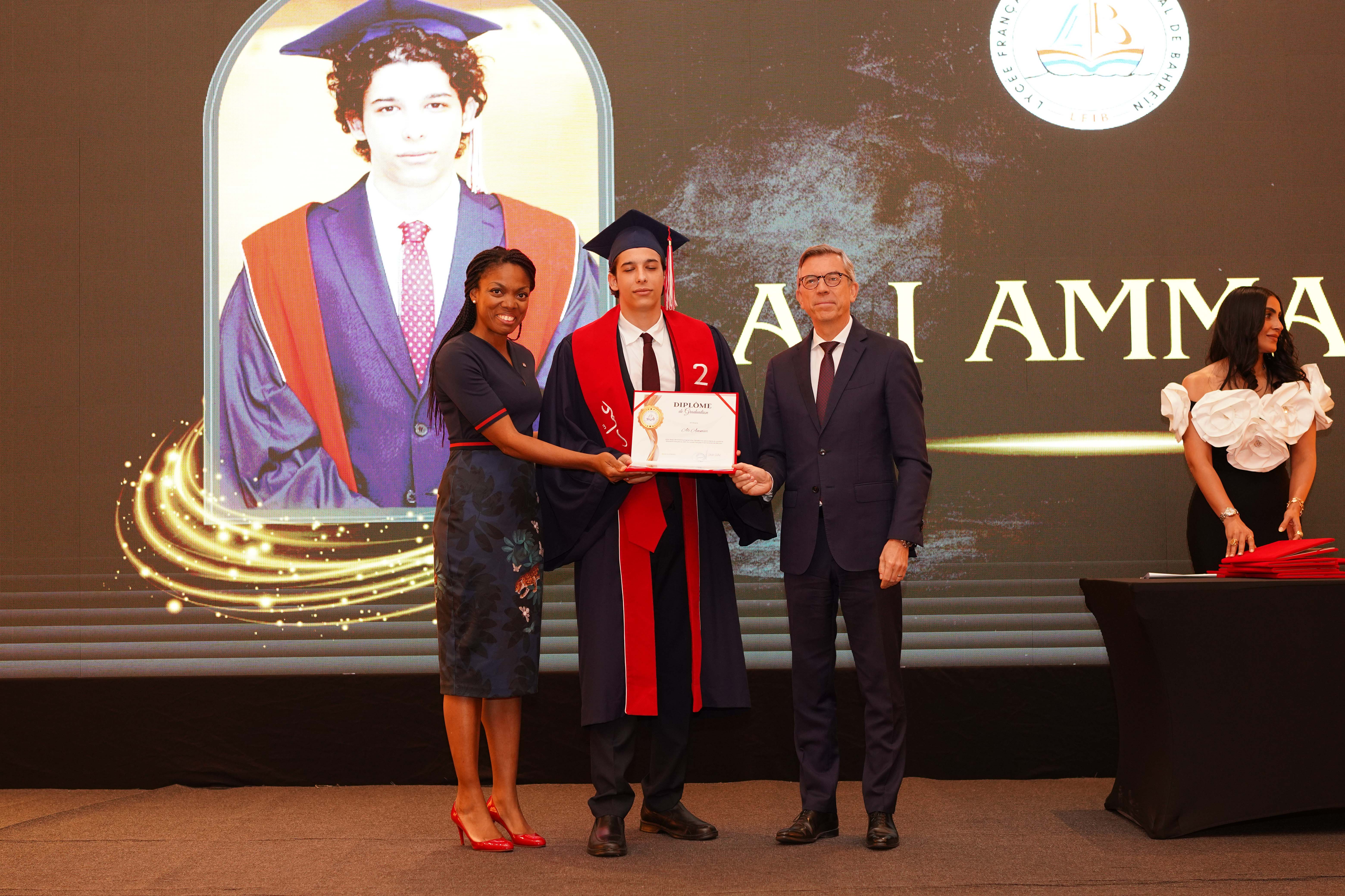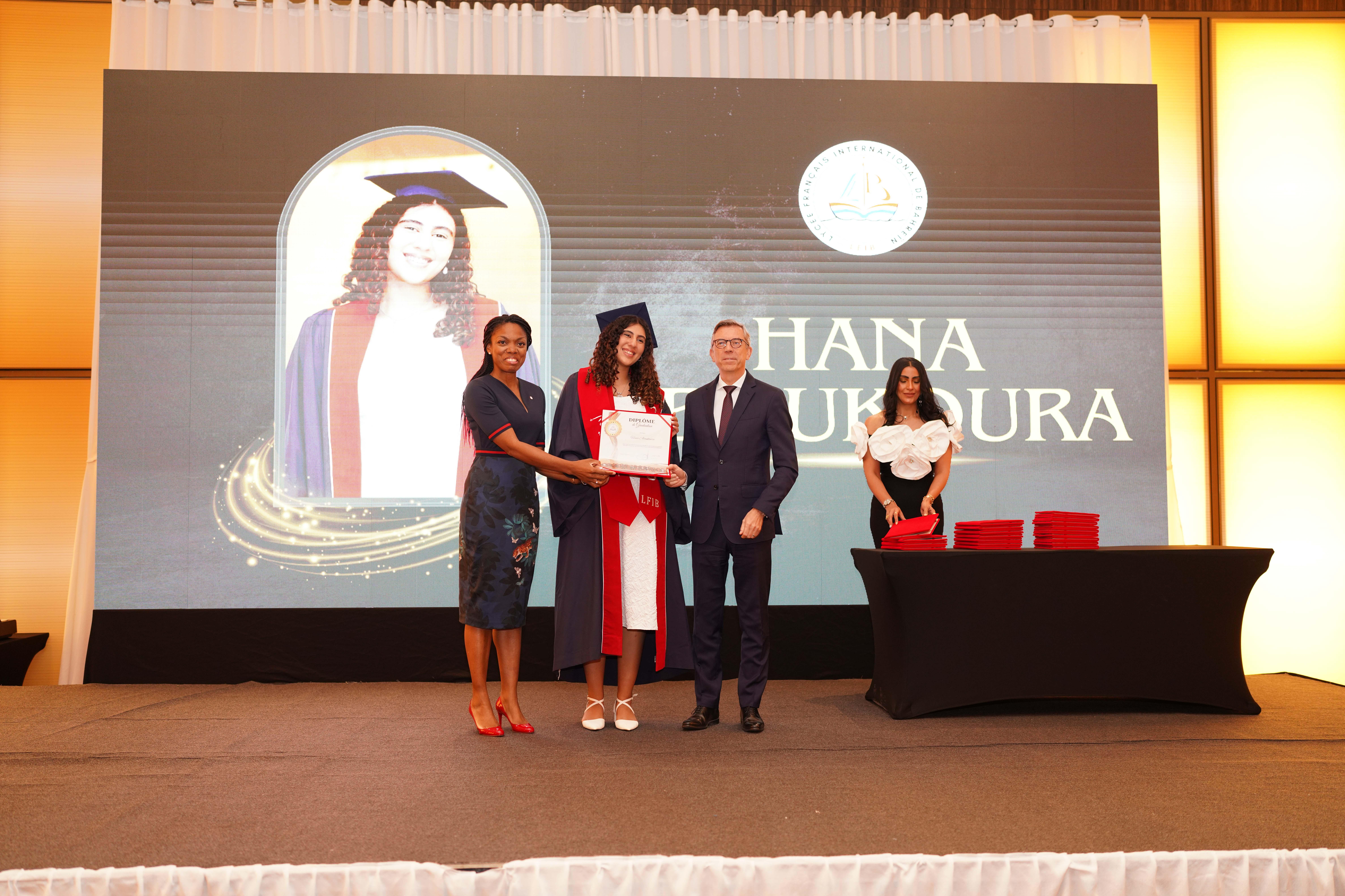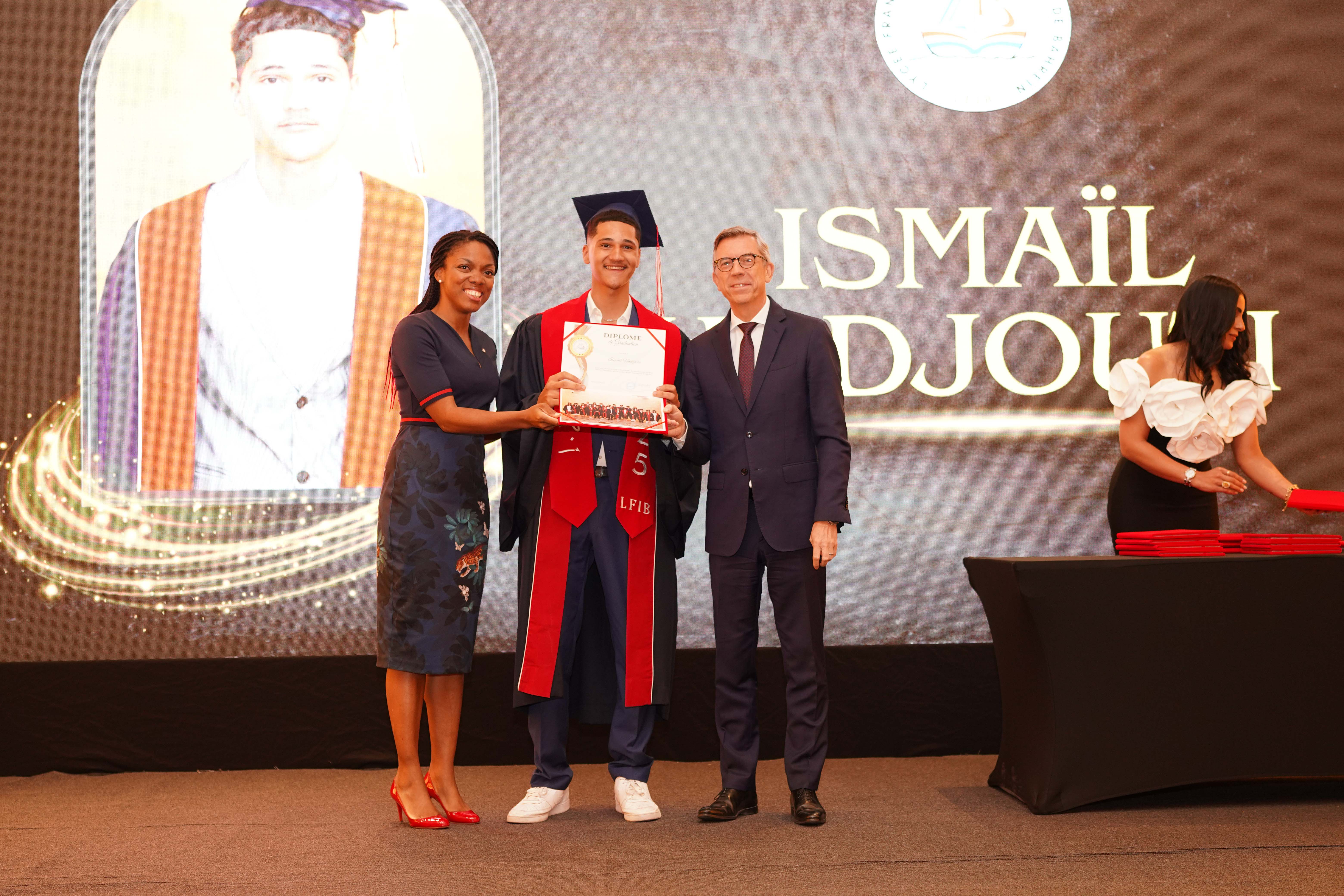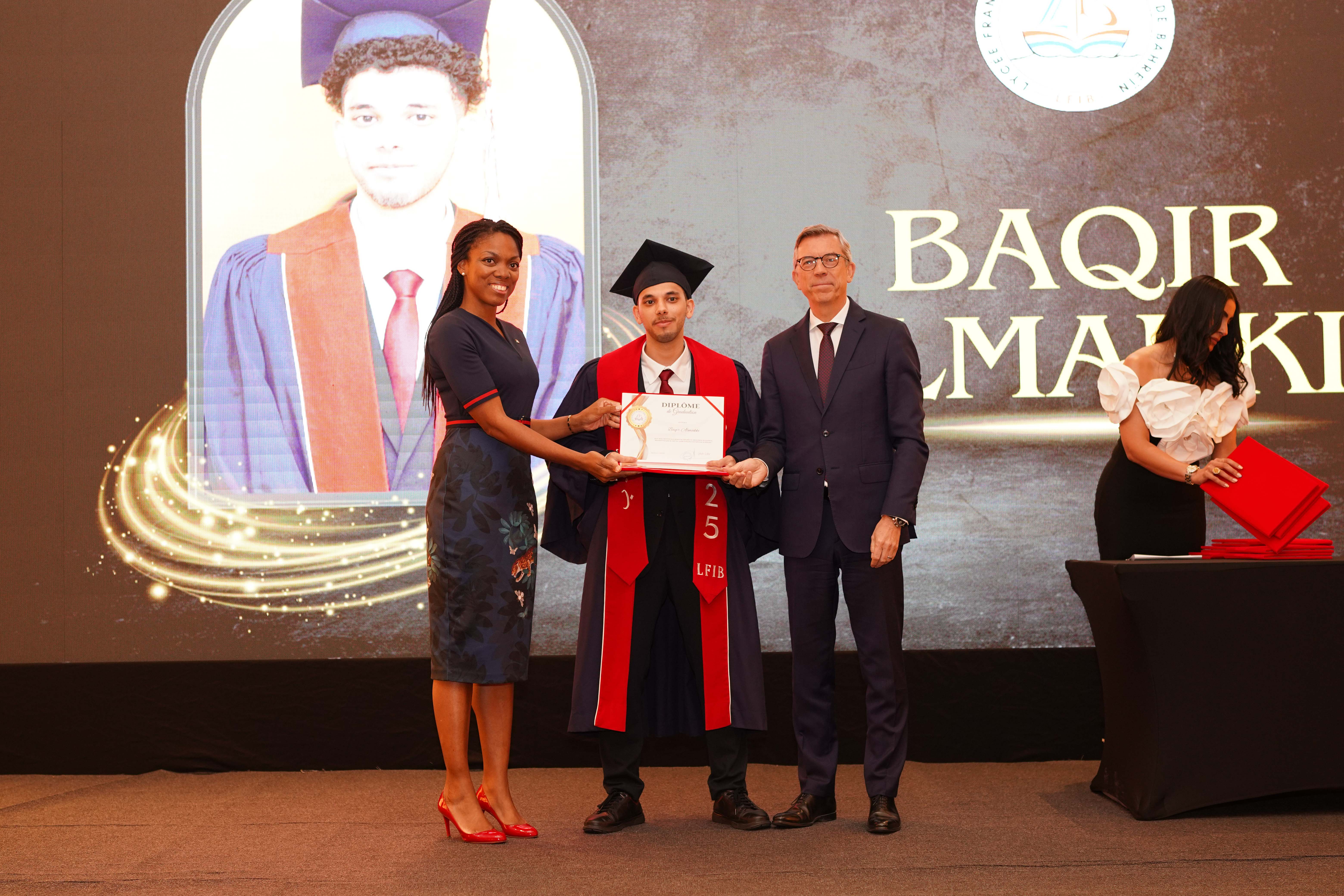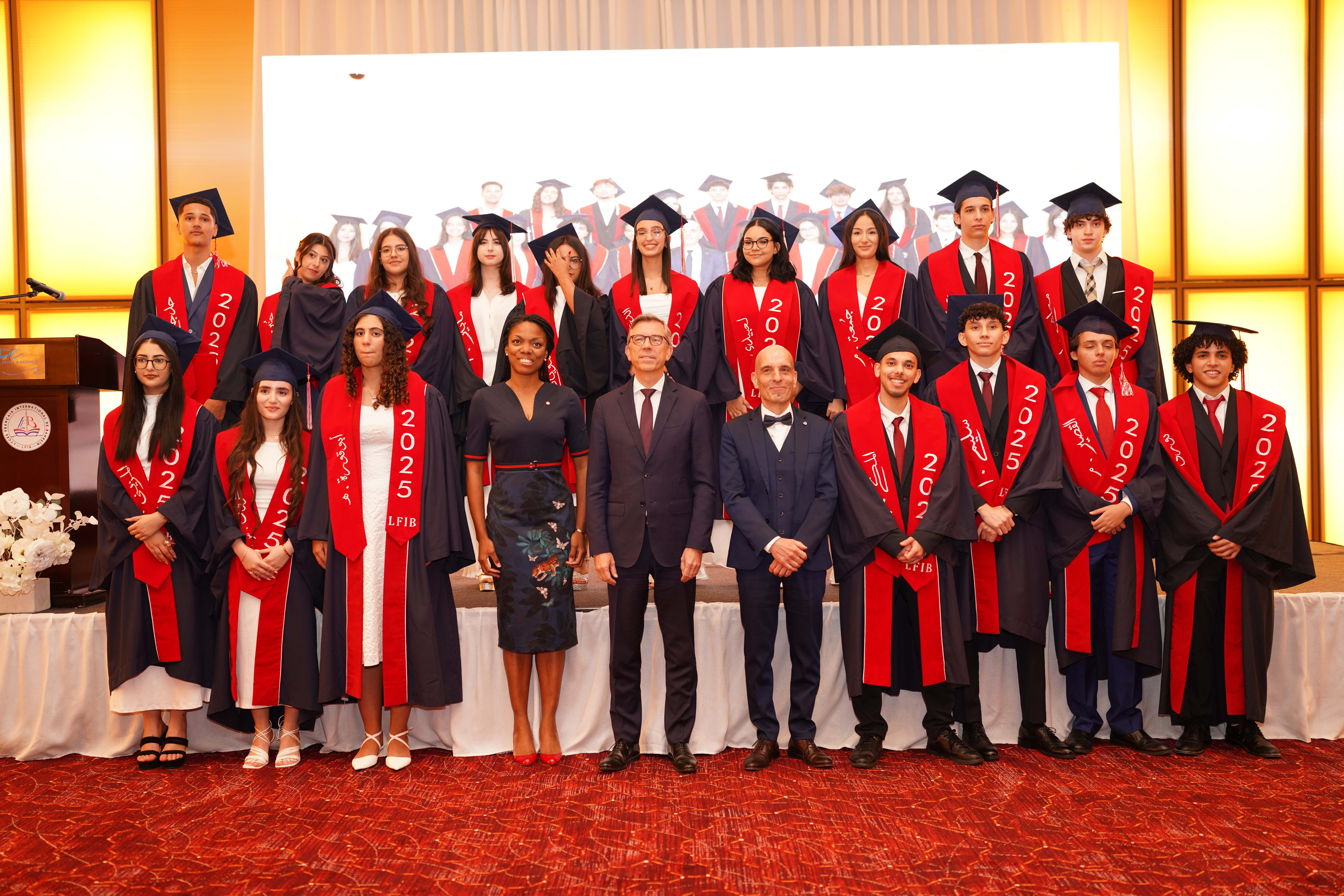 La cérémonie de remise des diplômes pour l’année scolaire 2024/2025 s’est déroulée dans le cadre prestigieux de l’hôtel et resort « The Art Rotana Amwaj ». Nous avons eu l’honneur d’accueillir S.E. Éric Giraud Telem, ambassadeur de France à Bahreïn, ainsi que Mme Rosiane Houngbo, conseillère des Français de l’étranger et représentante des Français. L’événement a également rassemblé des parents et des membres des équipes administrative et éducative.