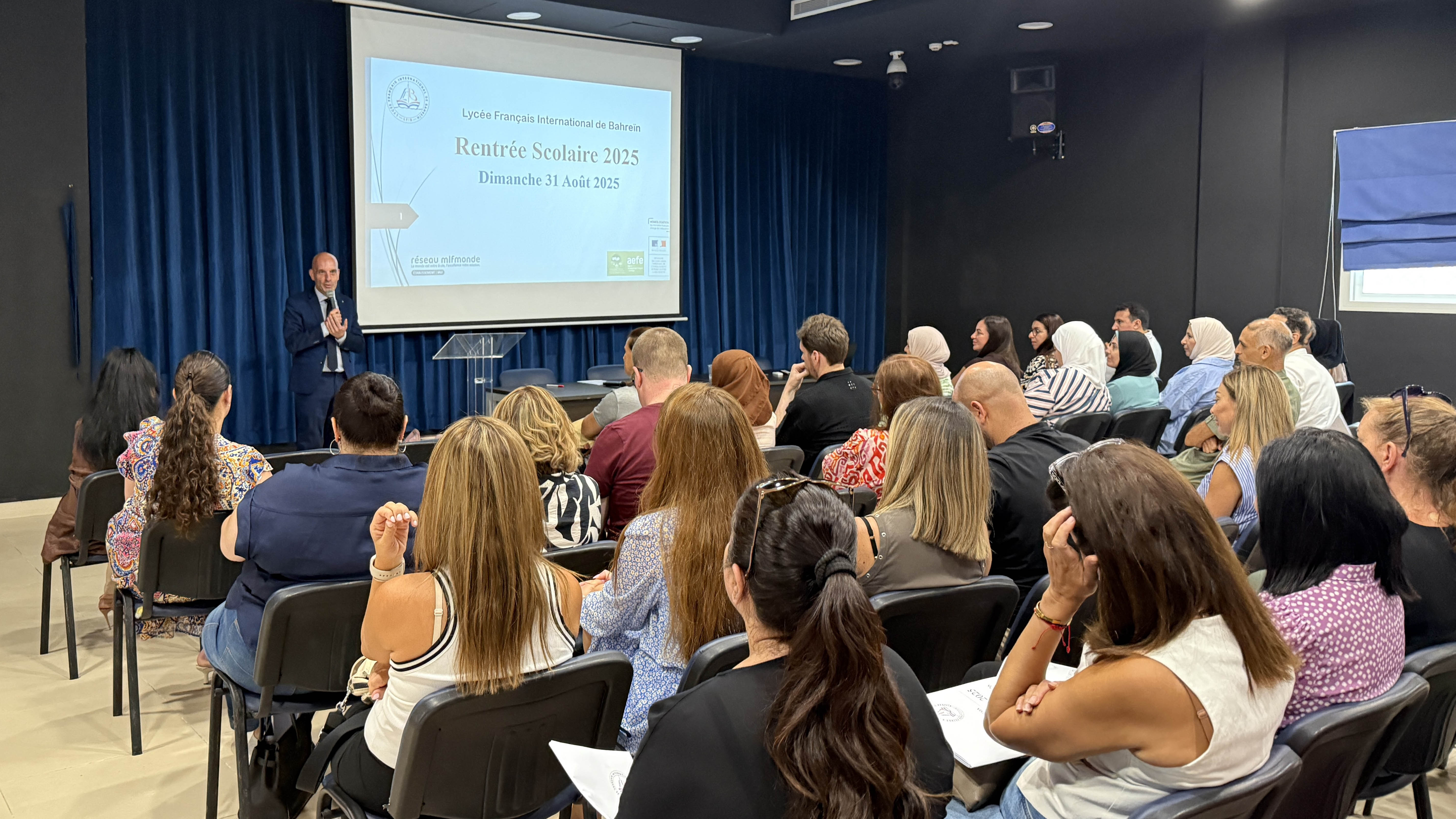 Dimanche le 31 Aout 2025, nos enseignants et l’équipe administrative se sont réunis, en présence de Mme Charrier, Première Conseillère de l’Ambassade de France à Bahreïn, pour préparer la nouvelle année scolaire ! Au programme : échanges sur les évolutions pédagogiques, organisationnelles et présentation des projets collaboratifs à venir.