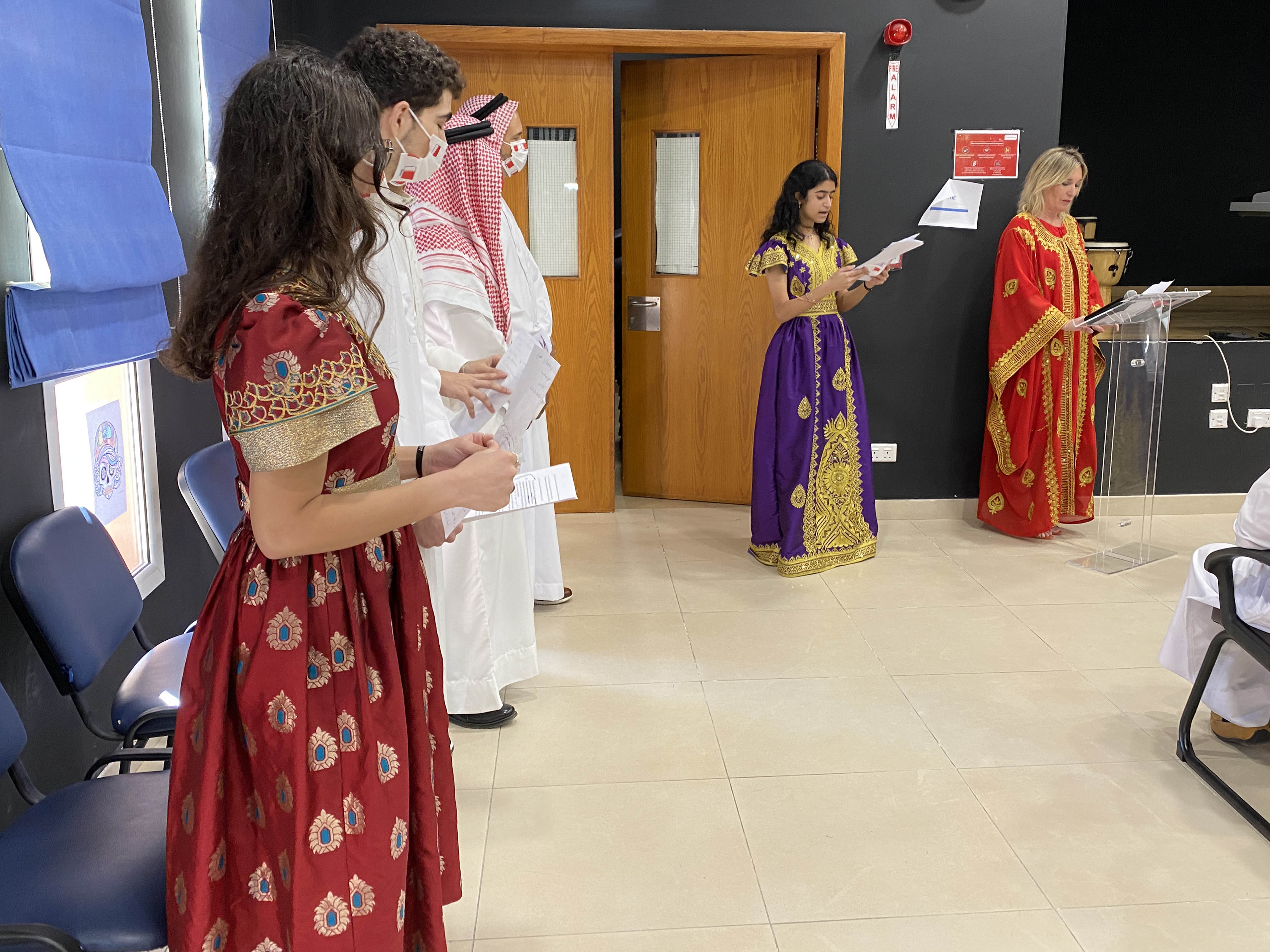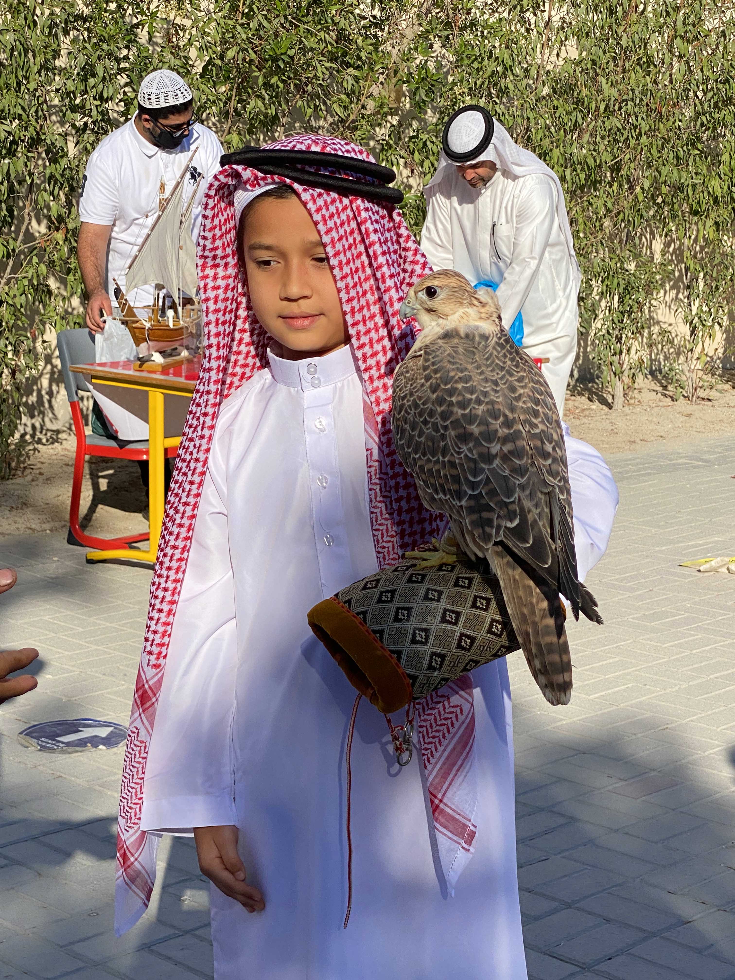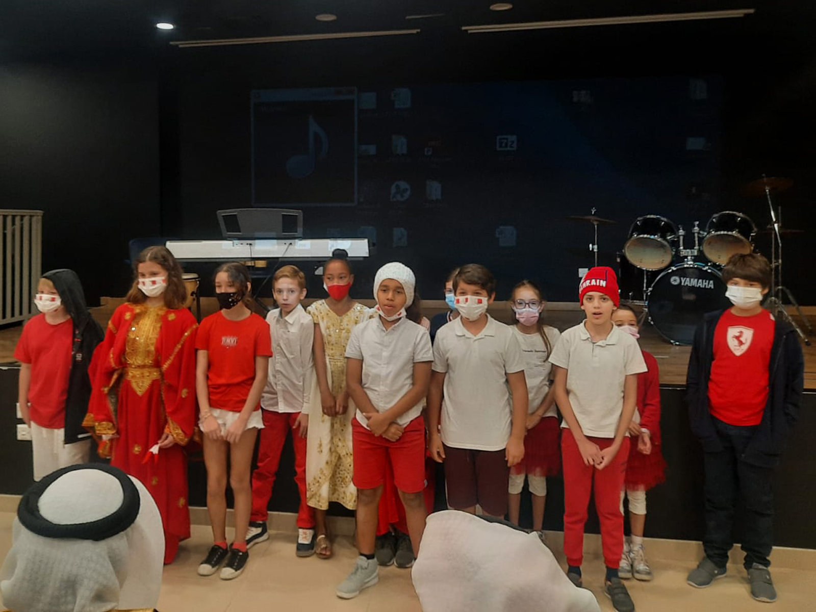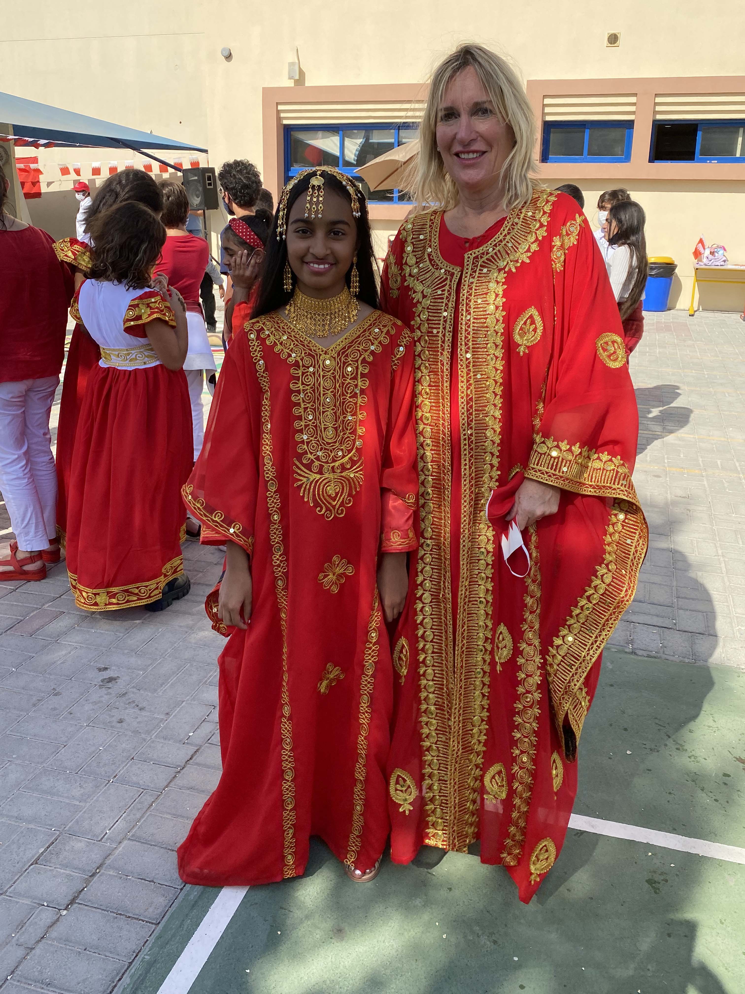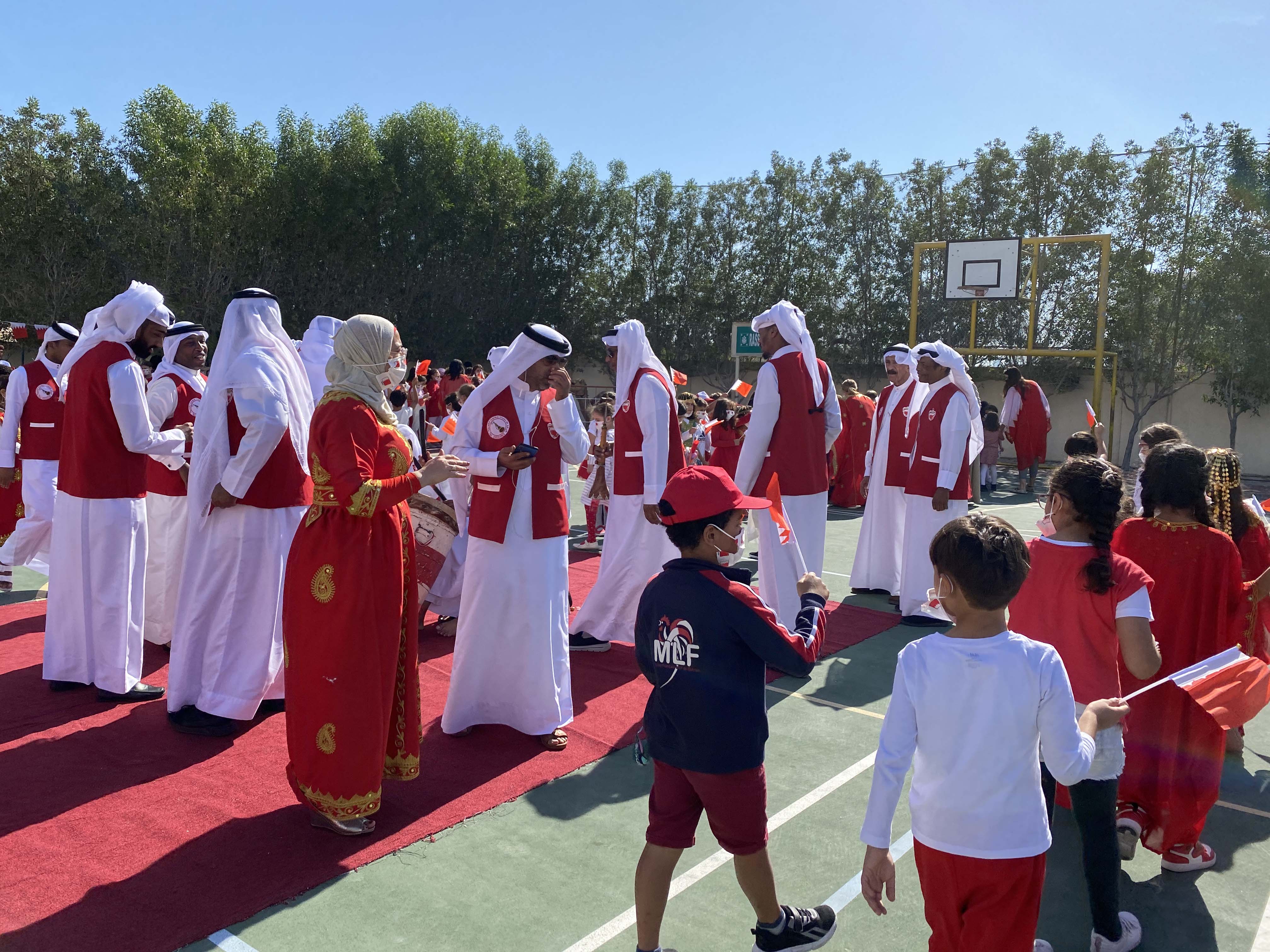 الطلاب والموظفون ارتدوا الزي التقليدي البحريني و ثياب بالابيض و الاحمر، معرض المراكب ، النسيج بالنخيل ، الجمل ، افتتاح محار اللؤلؤ ، الخزاف ، تصميم الحناء ، الرقص ، الألعاب التقليدية ، المعرض والنشيد الوطني مع الأعلام … كل شئ نظمناه احتفالا بعيد البلد التي استقبلتنا.
