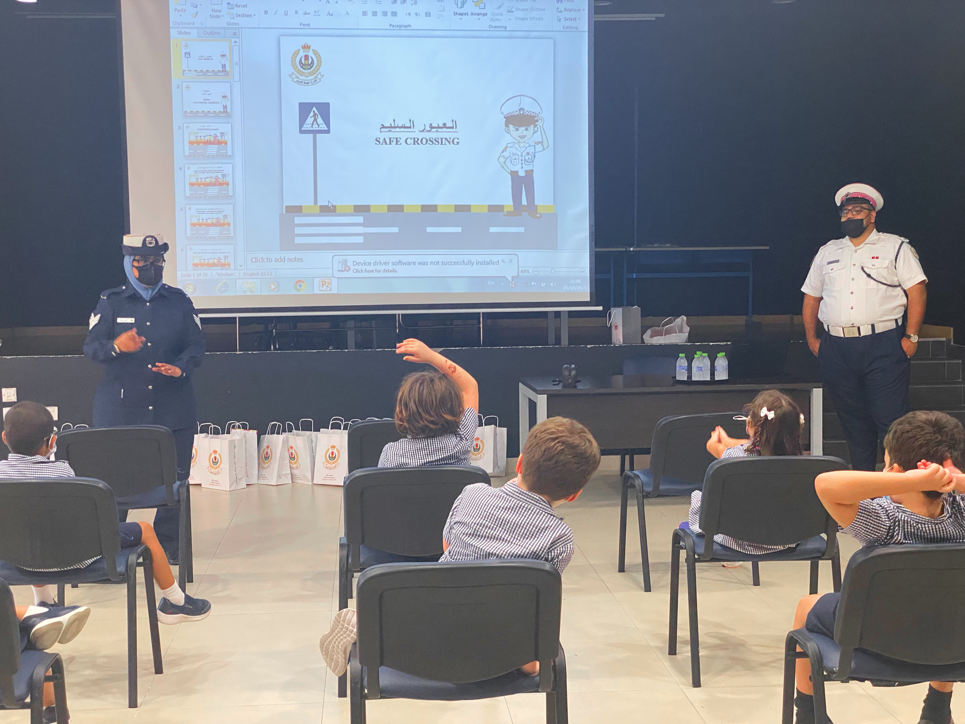 حضر طلاب الصف الاول محاضرة قدمتها شرطة المرور تحت عنوان ” العبور السليم