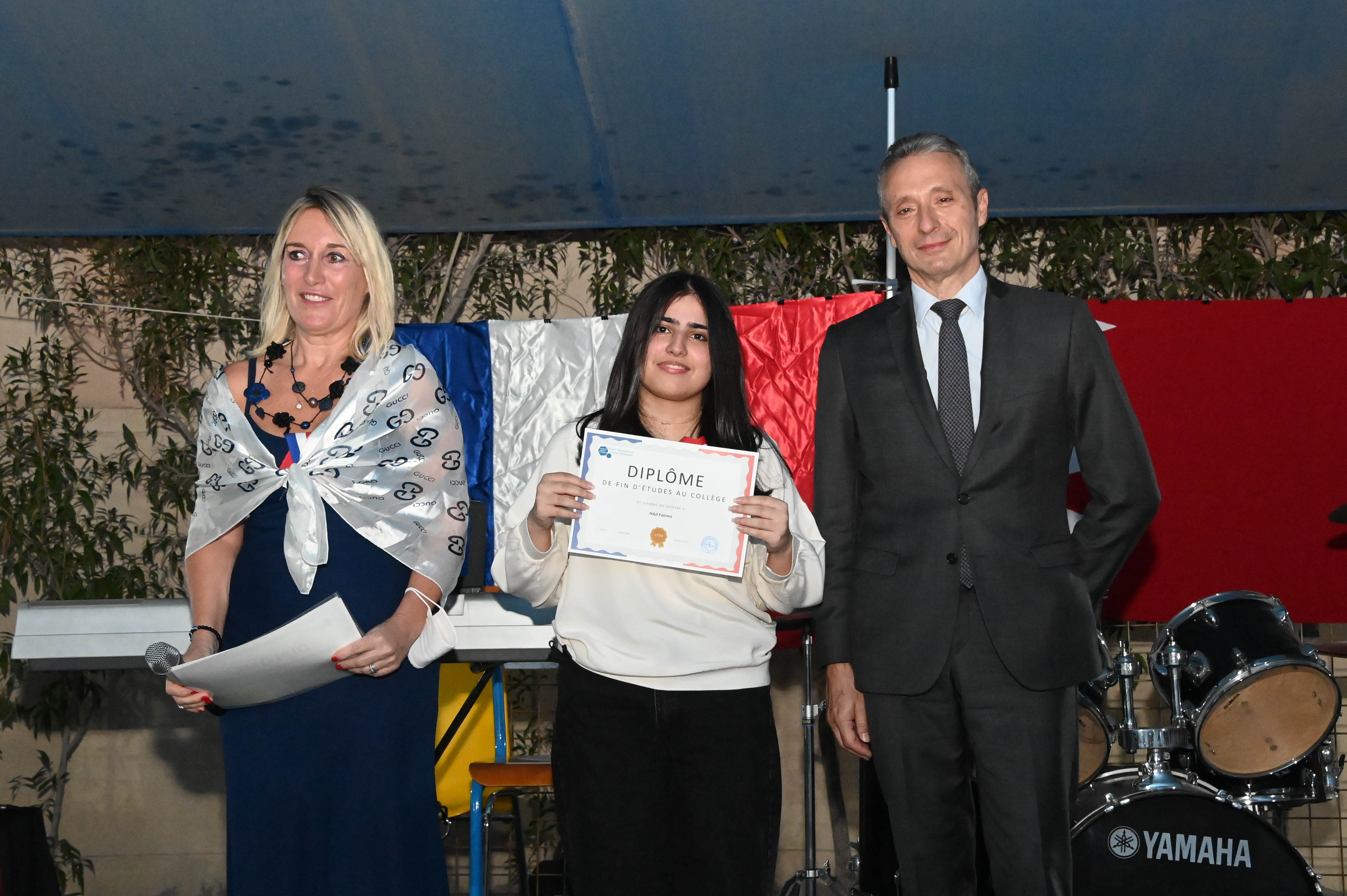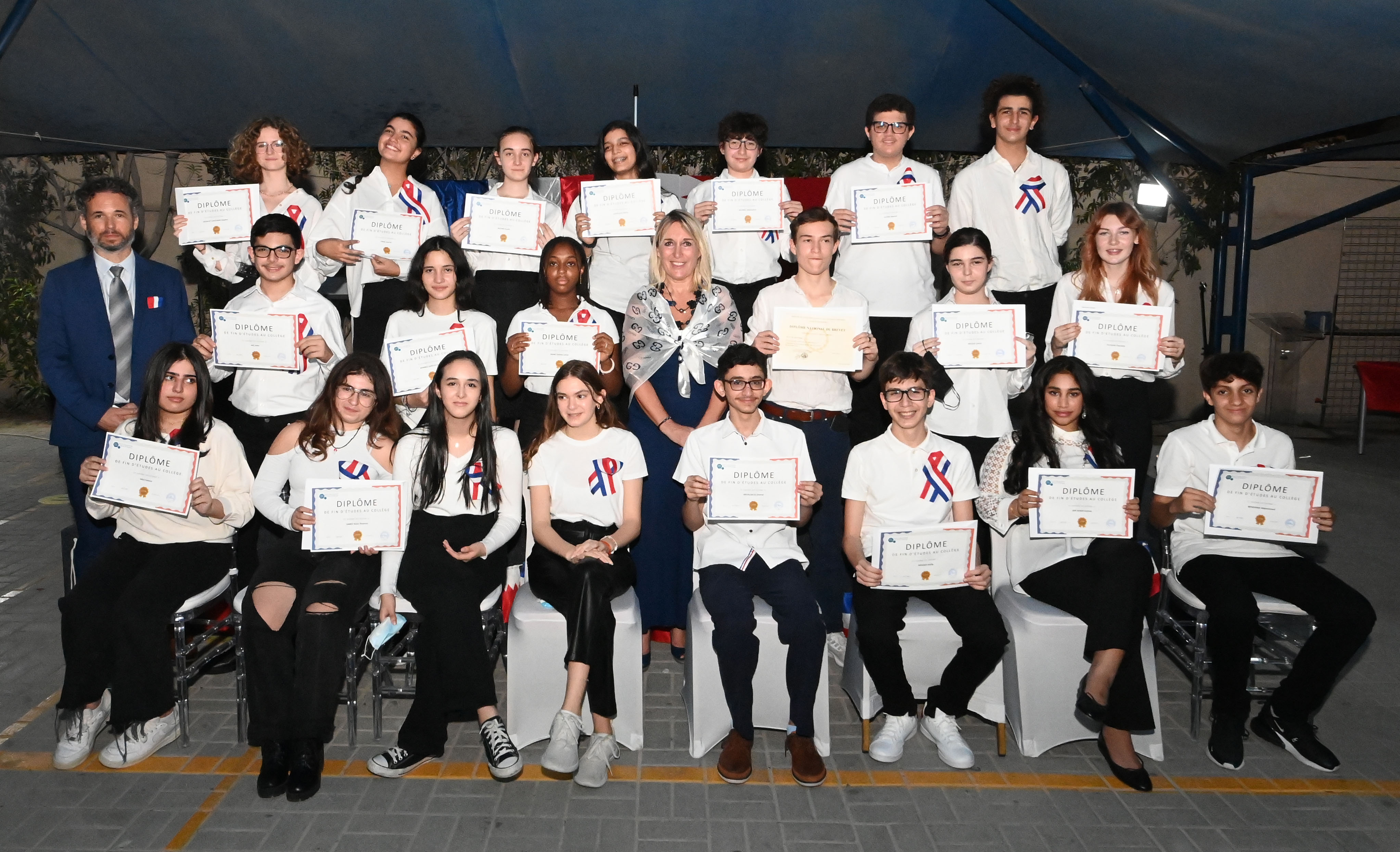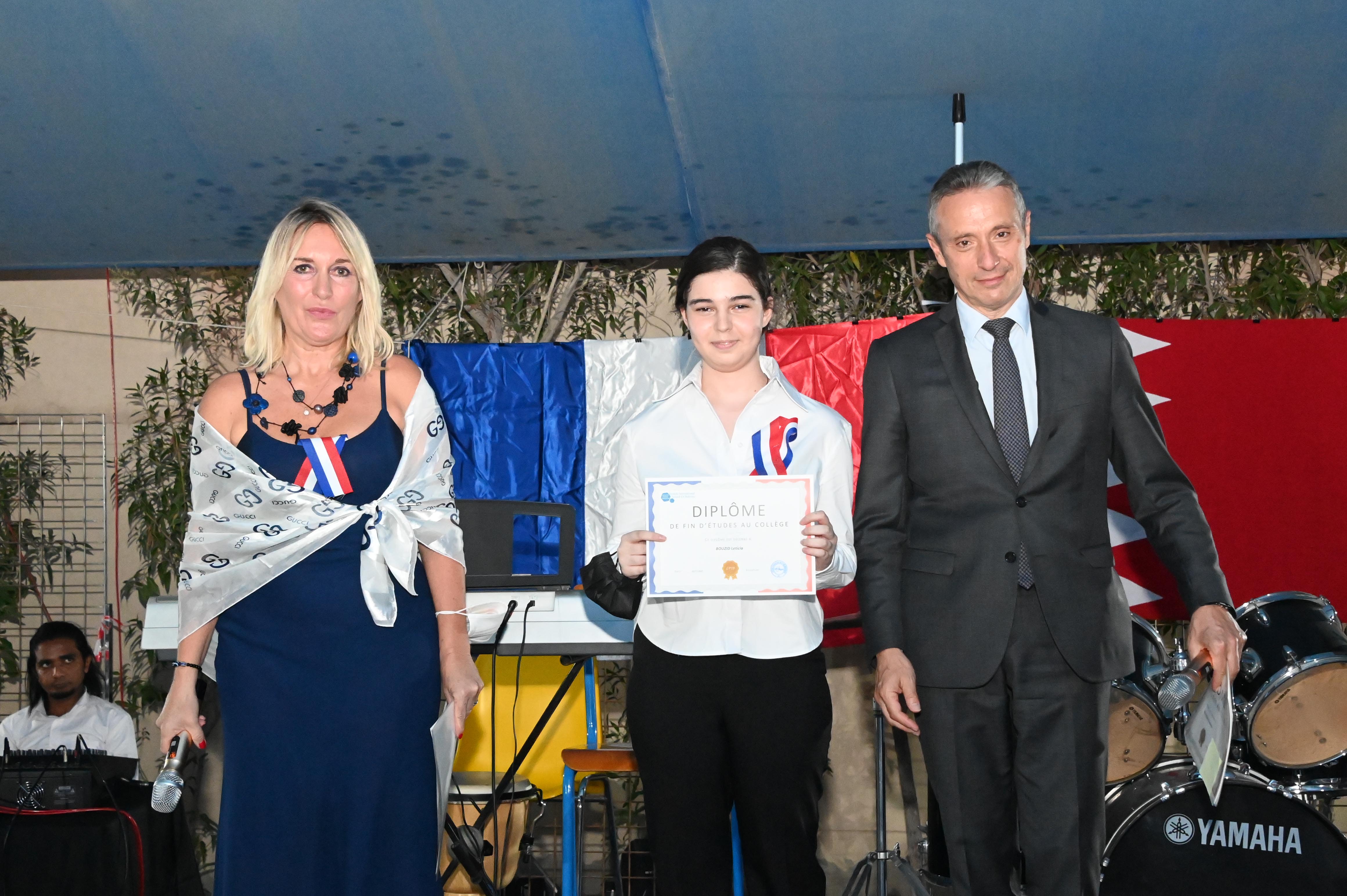 The Lycée Français International de Bahreïn organised a graduation ceremony for the middle school of the 2020-2021 academic year, at the primary school’s headquarters in Busaiteen, in the presence of His Excellency the Governor of Muharraq, Mr. Saleh bin Hindi, and His Excellency the Ambassador of France to the Kingdom, Mr. Jérôme Kochard.