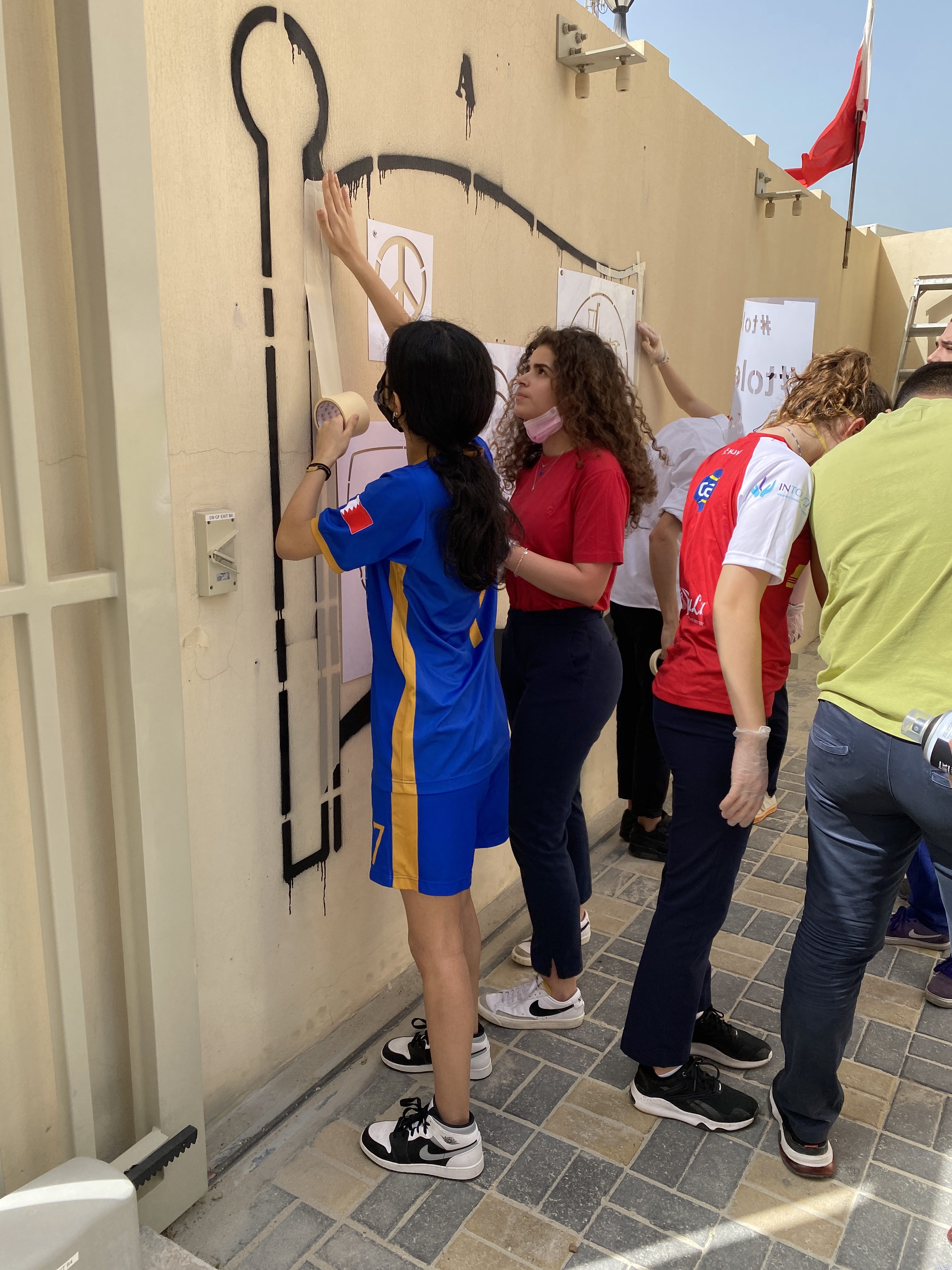 As part of the art and power axis in Spanish class, the final year students studied “el muralismo”. Muralism is an artistic movement that appeared in Mexico from 1920. The artists (Diego Rivera, José Clemente Orozco, David Alfaro Siqueiros…) who participated in this movement, tried to translate through painting, their vision of the national identity, the political, economic and social situation of Mexico. Most of the works were made on the walls of public buildings. The educational goal of muralism was to spread part of Mexican culture and life to a wide audience. Muralism is still in force and has spread to other Latin American countries, the United States… This public art is no longer confined to public buildings but is found in the walls of the city, because it does not belong to anyone and everyone must be able to have access to it. Inspired by the causes defended by the muralists, the final year students decided to paint two murals at the entrance of the high school in order to promote environmental protection and tolerance, two essential subjects for the French secular mission.