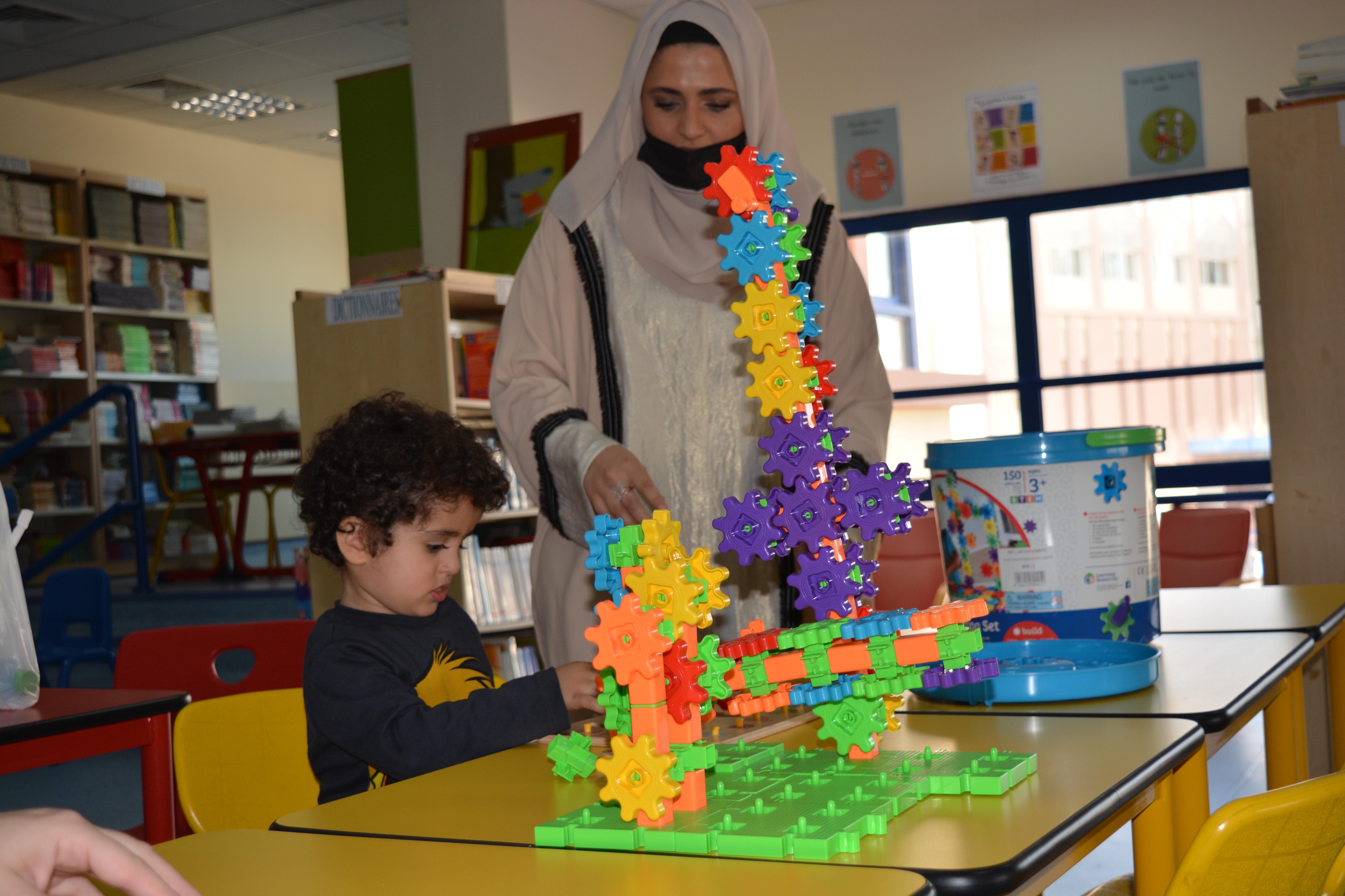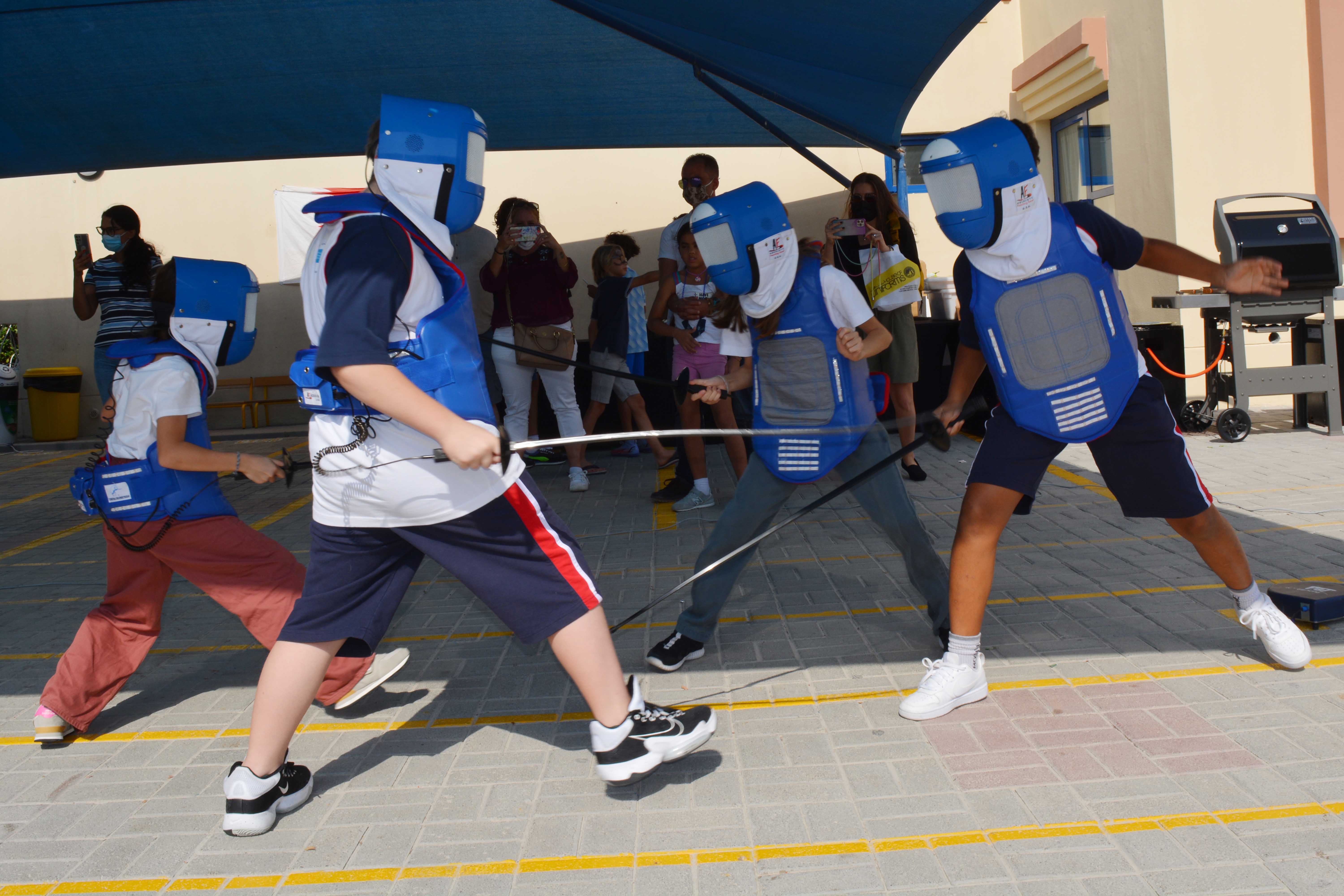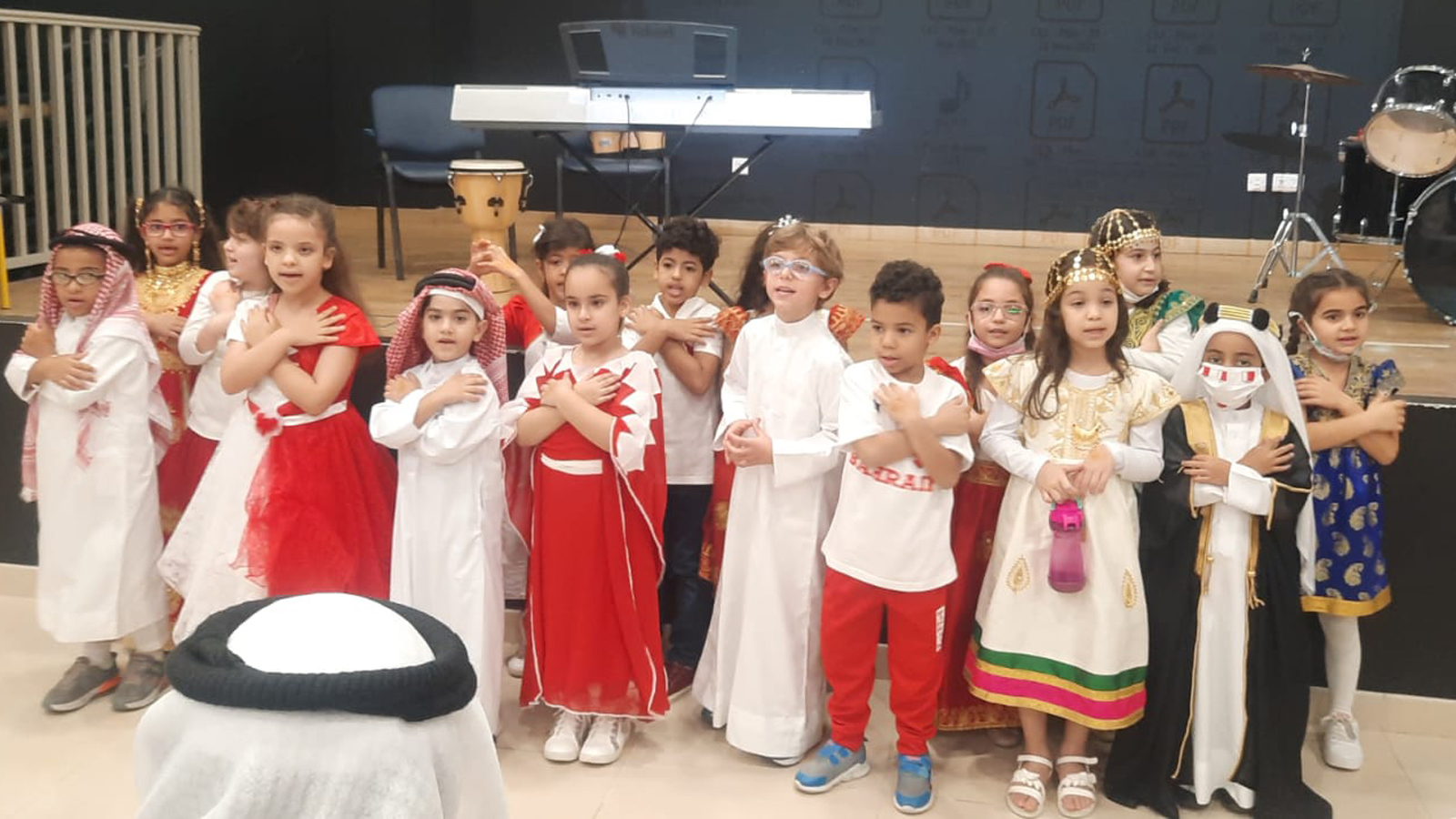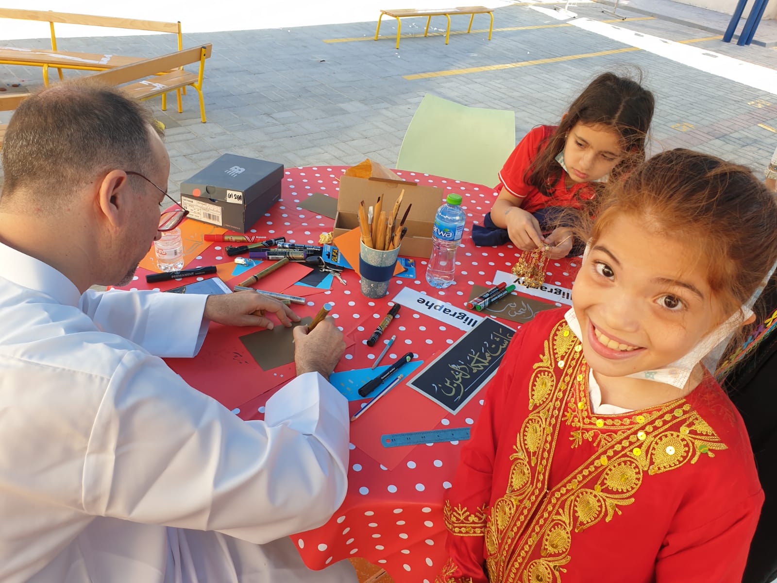 LStudents and staff dressed in traditional costumes or in the colours of Bahrain, exhibition of boats, weaving with palm leaves, camel, opening of pearl oysters, potter, drawing with henna, dances, traditional games, exhibition and national anthem with flags… Everything was gathered to honour the country which welcomes us.